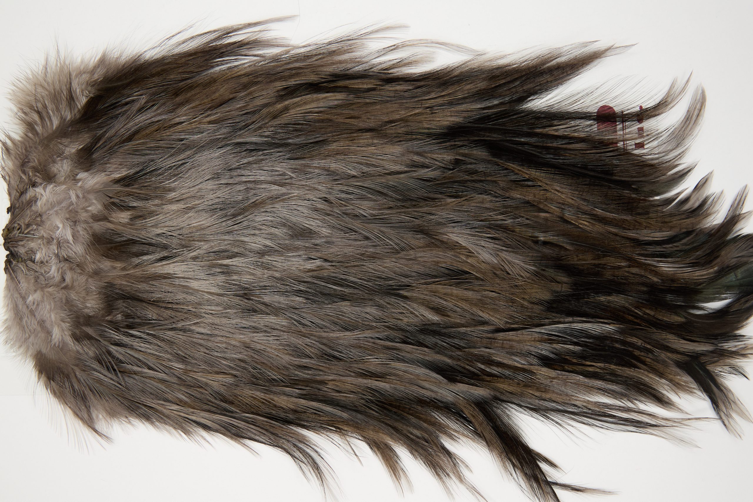 11724 is a Coq De Leon Bronze Grade Rooster Cape of Dun color that ties predominately size NA. The image shown is an actual photo of this dry fly saddle. This is NEW UNUSED HACKLE.