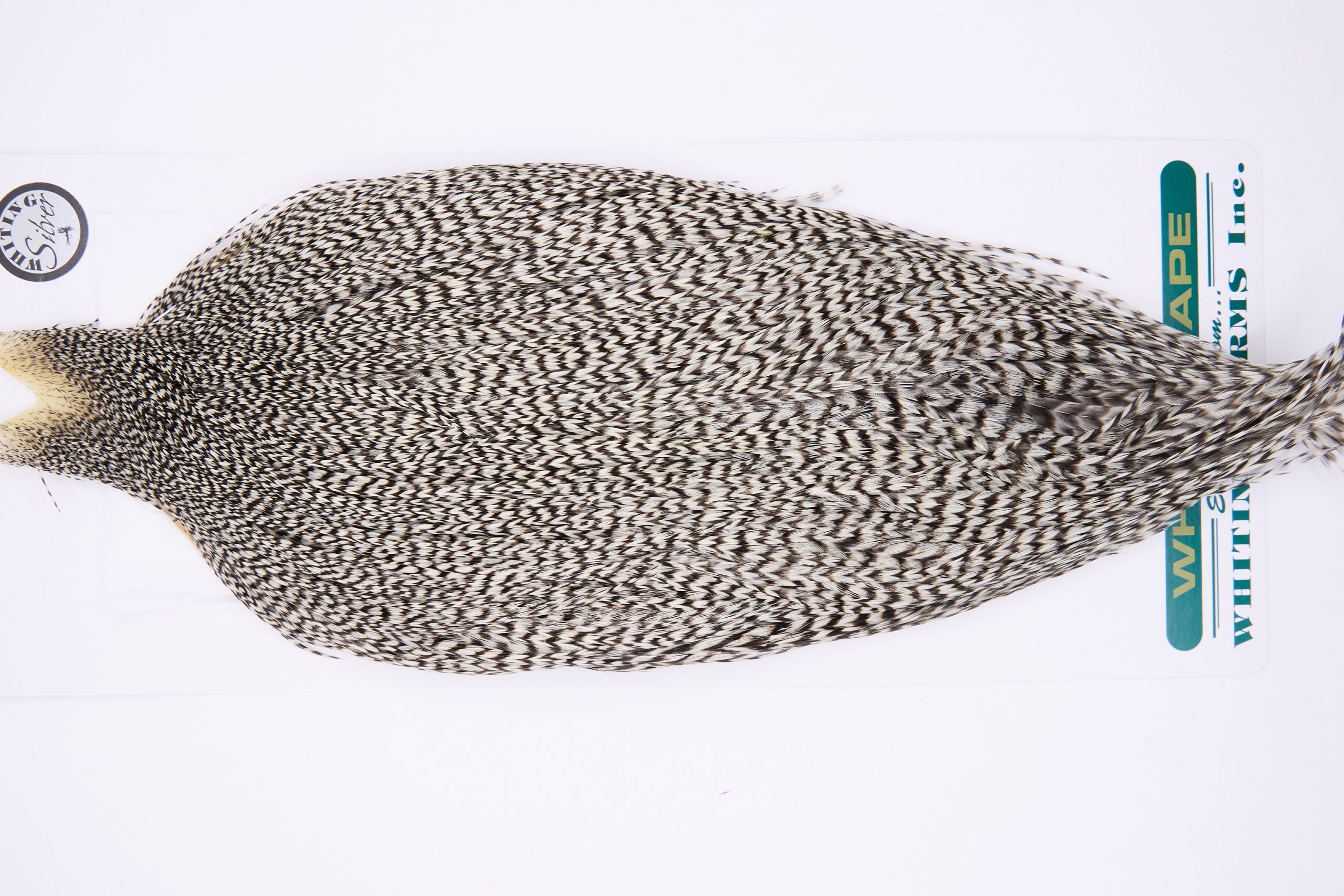 11743 is a Hebert Minor Silver Grade Rooster Cape of Grizzly color that ties predominately size 6-22. The image shown is an actual photo of this dry fly cape. This is NEW UNUSED HACKLE.