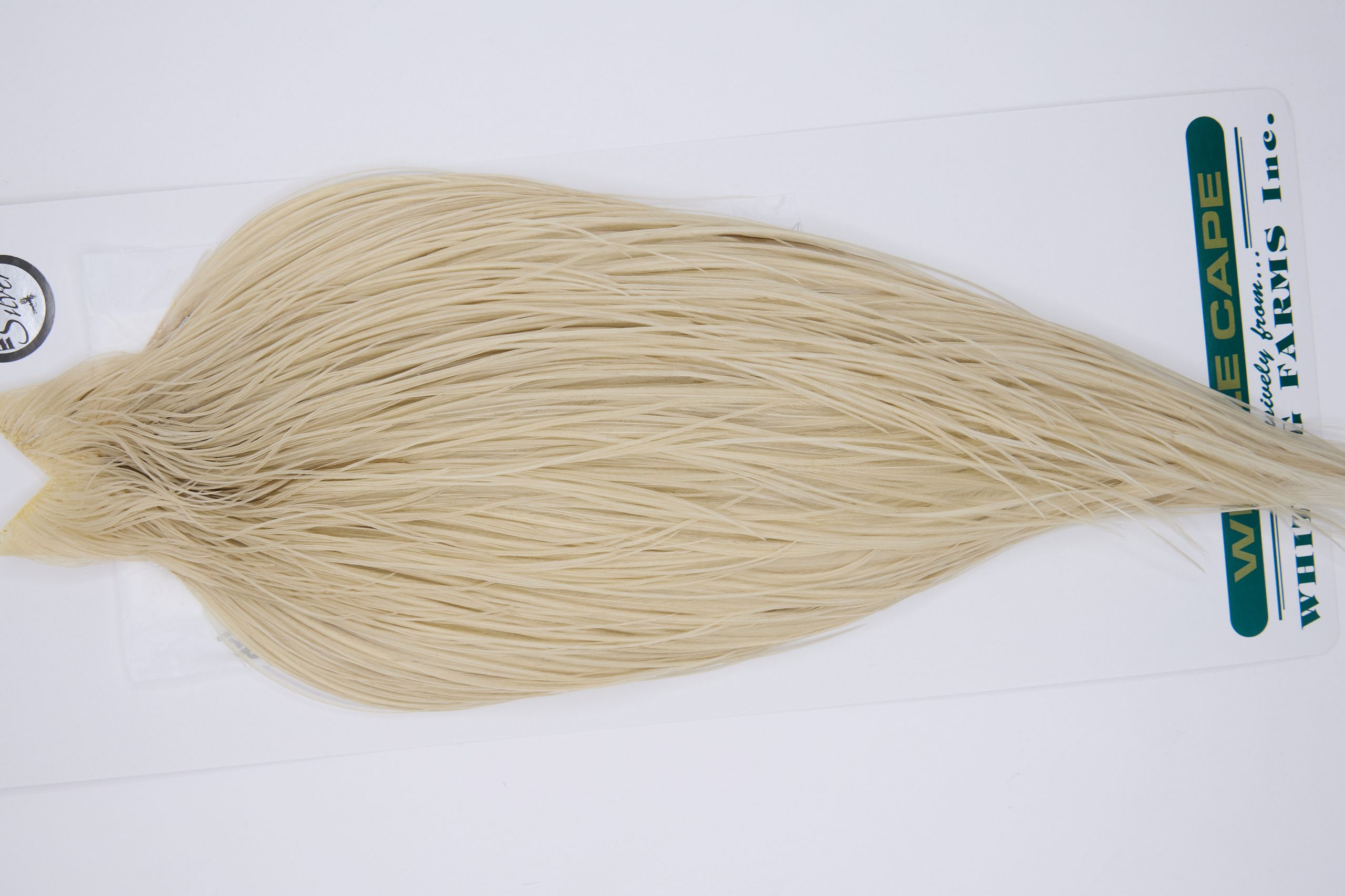 11758 is a Hebert Minor Silver Grade Rooster Cape of Pale Watery Dun color that ties predominately size 8-22. The image shown is an actual photo of this dry fly cape. This is NEW UNUSED HACKLE.