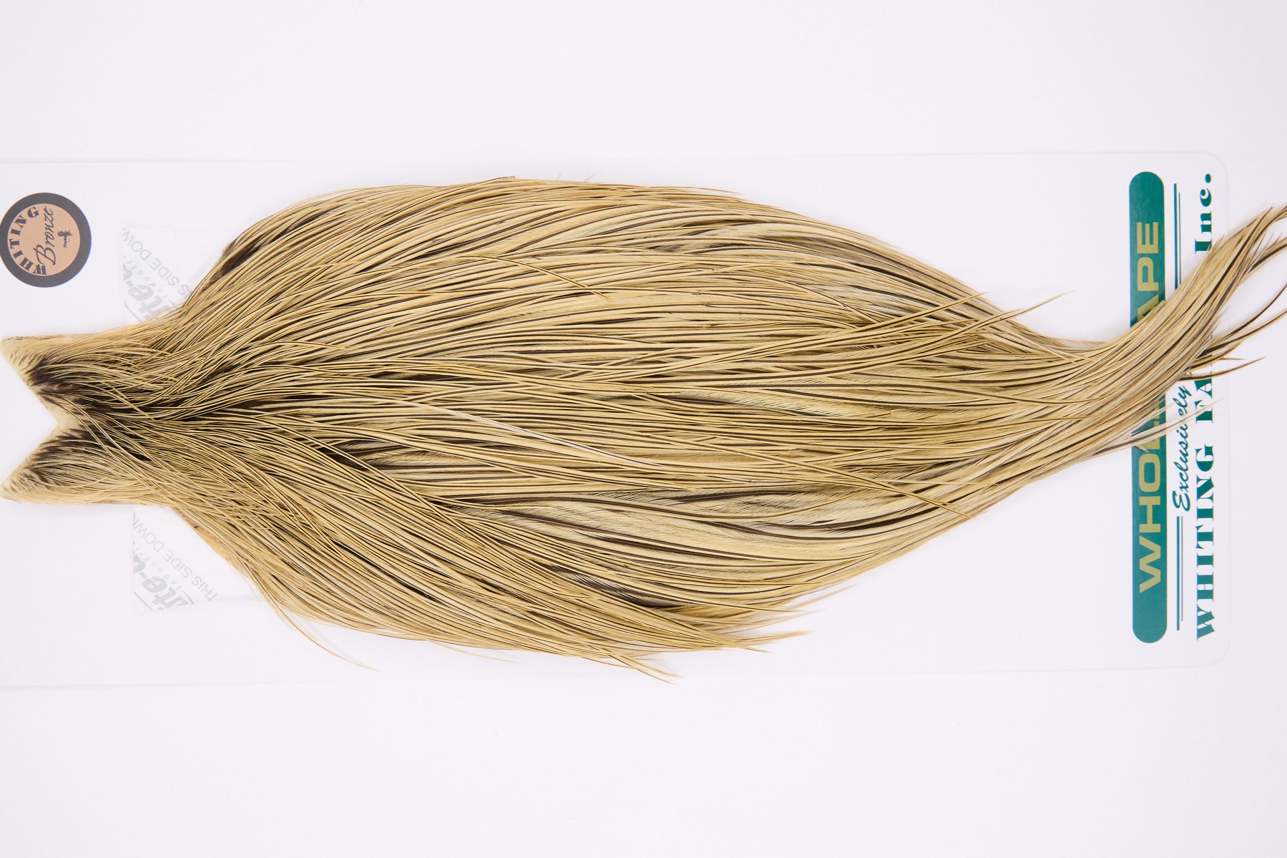 11778 Hebert Dry Fly Hackle Bronze Grade Rooster Cape Light Ginger Dun Ties Size 10-22