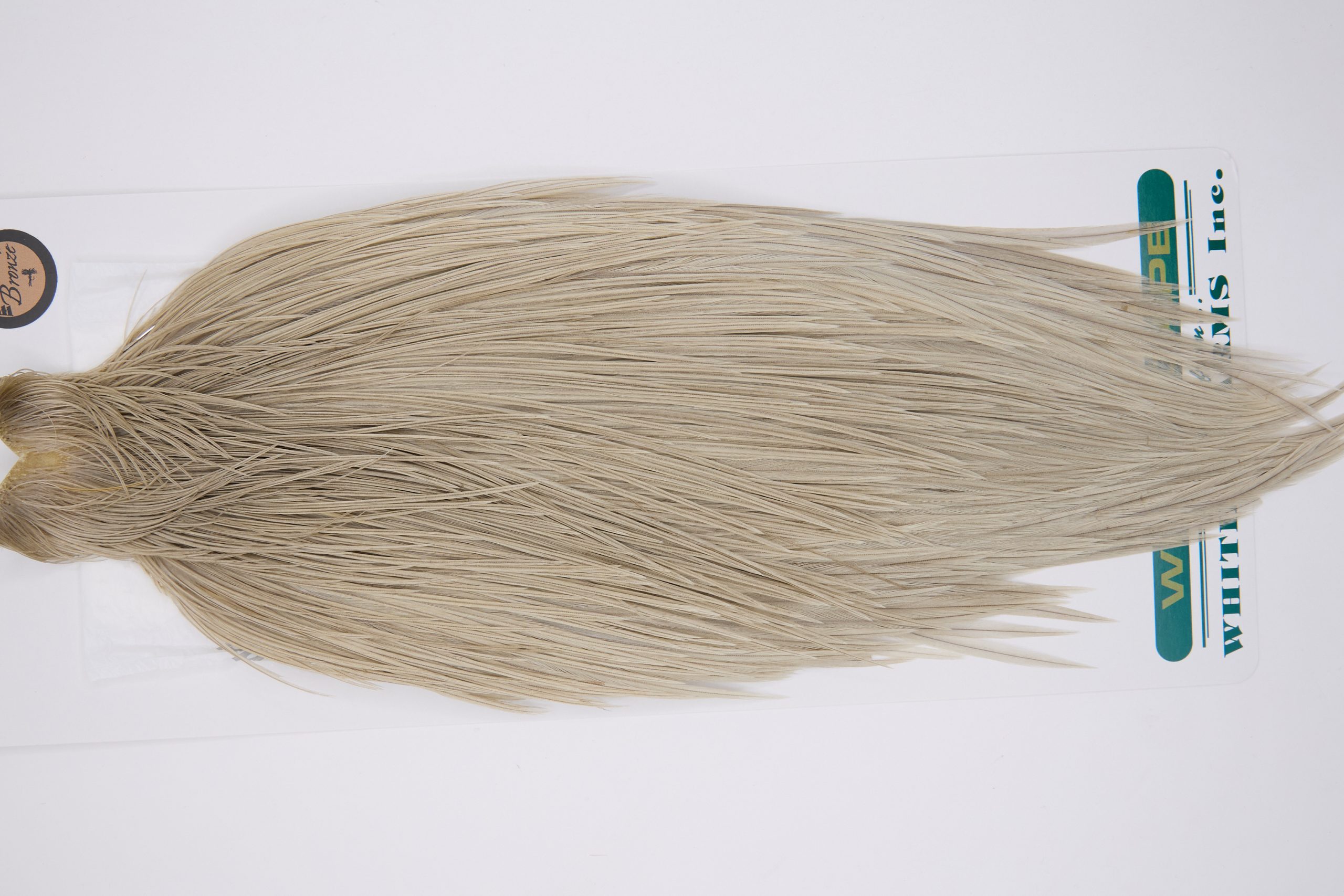 11788 is a Hebert Minor Bronze Grade Rooster Cape of Light Grey Dun color that ties predominately size 8-22. The image shown is an actual photo of this dry fly cape. This is NEW UNUSED HACKLE.