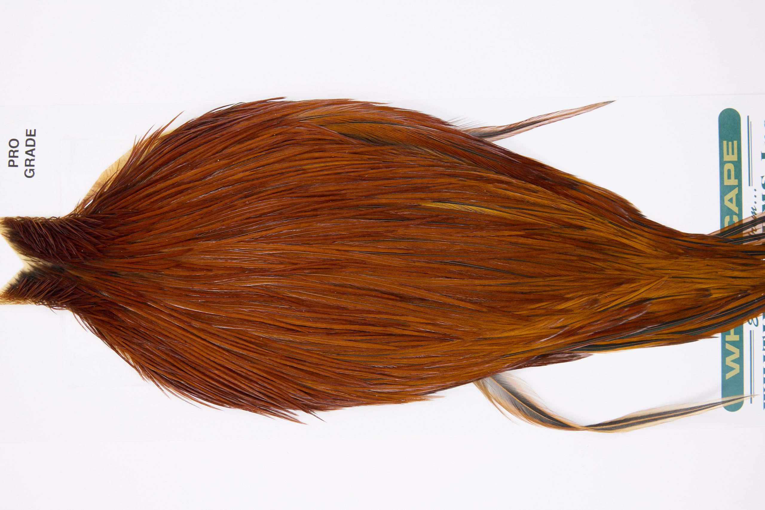 11803 is a Hebert Minor Pro Grade Rooster Cape of Medium Brown color that ties predominately size 6-20. The image shown is an actual photo of this dry fly cape. This is NEW UNUSED HACKLE.