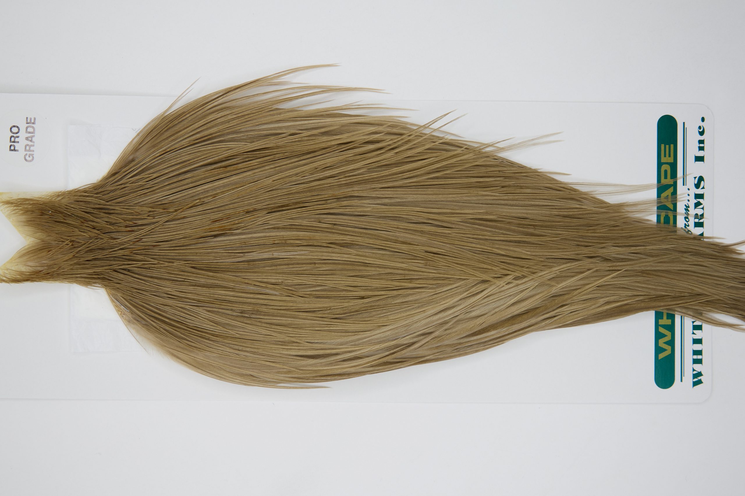 11859 is a Hebert Minor Pro Grade Rooster Cape of Medium Brown Dun color that ties predominately size 10-22. The image shown is an actual photo of this dry fly cape. This is NEW UNUSED HACKLE.