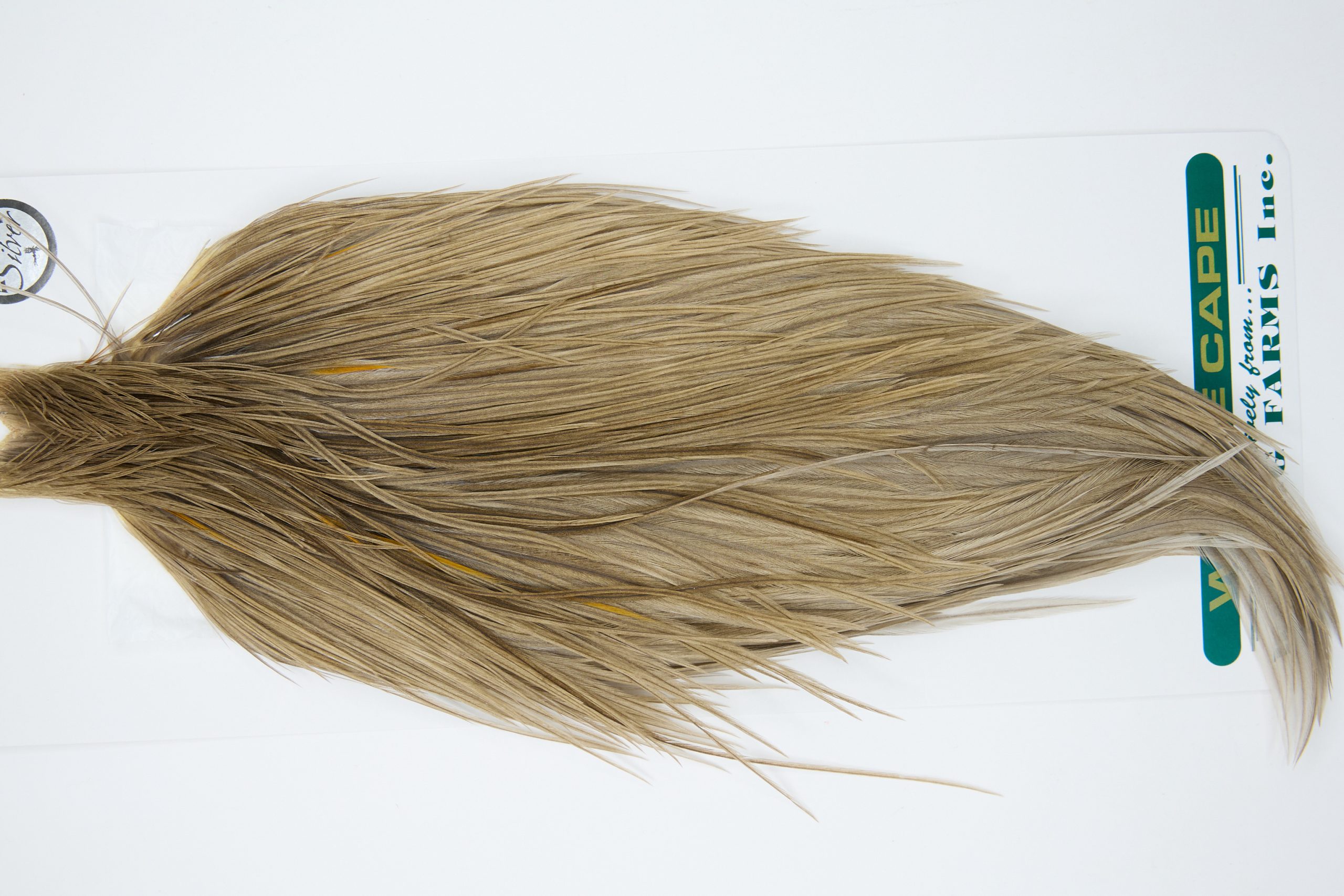 11935 is a Hebert Minor Silver Grade Rooster Cape of Brown Grey Dun color that ties predominately size 8-22. The image shown is an actual photo of this dry fly cape. This is NEW UNUSED HACKLE.