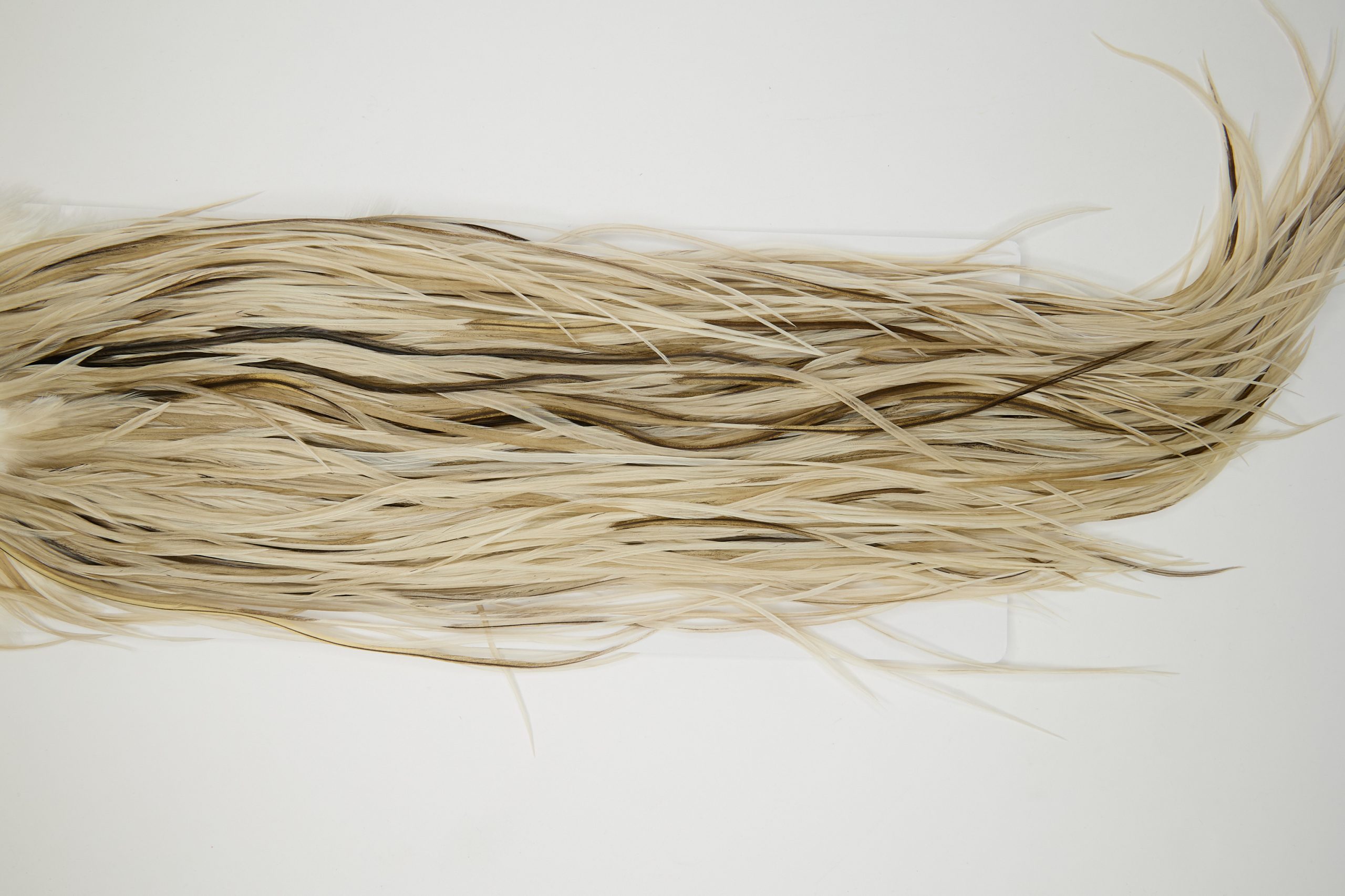 11949 is a Hebert Minor Gold Grade Rooster Saddle of Pale Watery Dun color that ties predominately size 12-14. The image shown is an actual photo of this dry fly saddle. This is NEW UNUSED HACKLE.