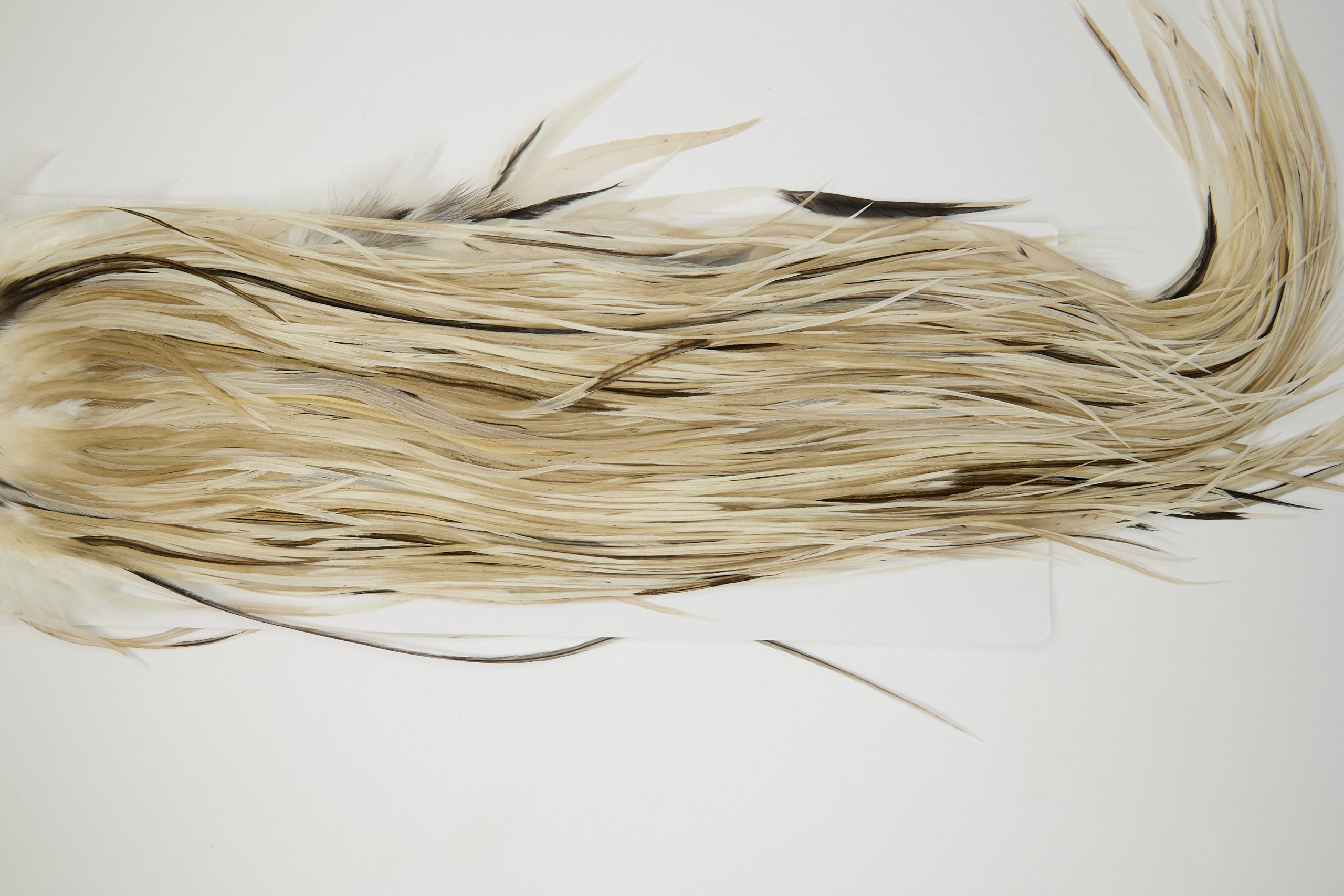 11950 is a Hebert Minor Gold Grade Rooster Saddle of Pale Watery Dun color that ties predominately size 12-16. The image shown is an actual photo of this dry fly saddle. This is NEW UNUSED HACKLE.