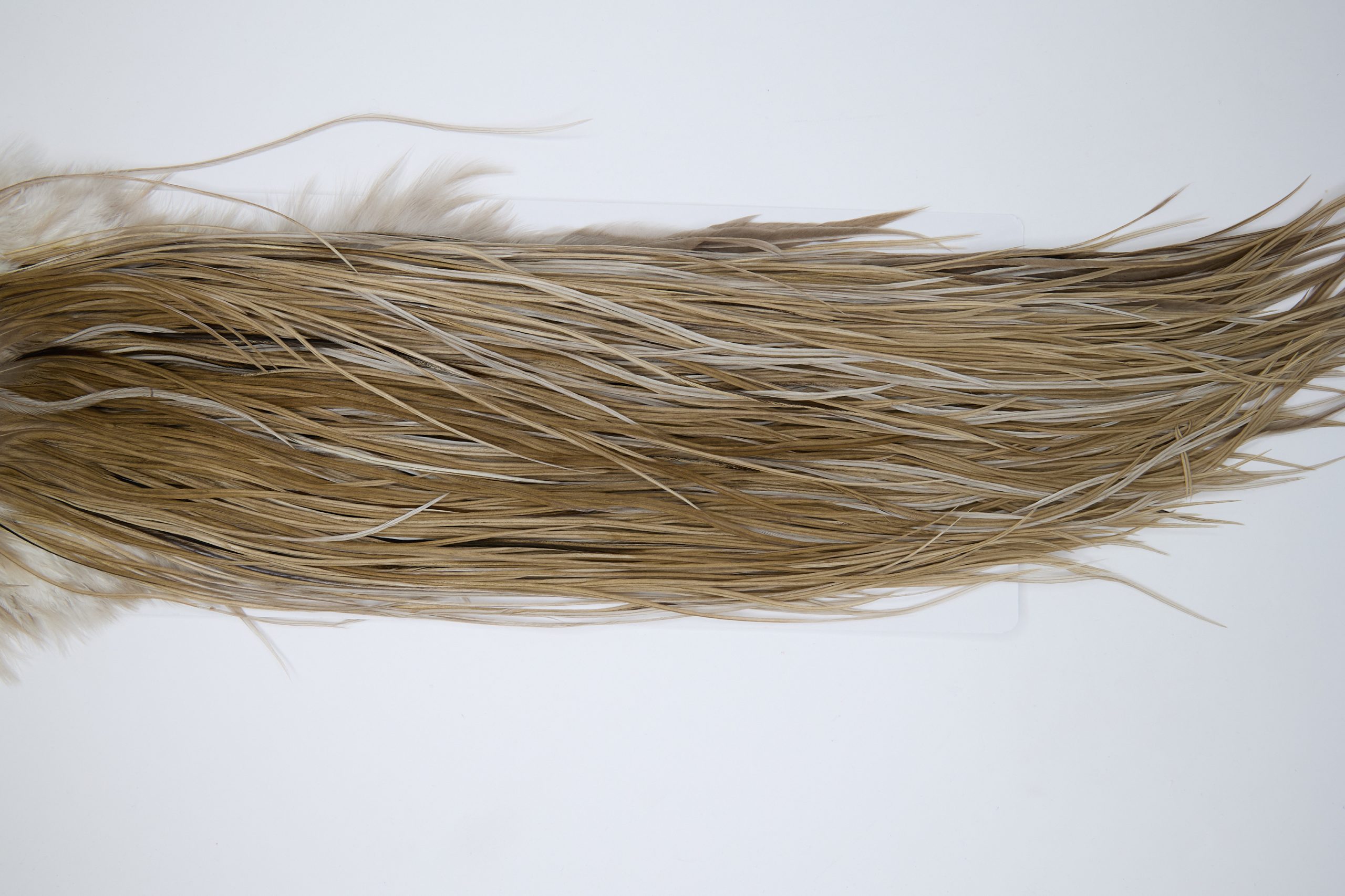 11997 is a Hebert Minor Silver Grade Rooster Saddle of Medium Brown Dun color that ties predominately size 14-16. The image shown is an actual photo of this dry fly saddle. This is NEW UNUSED HACKLE.