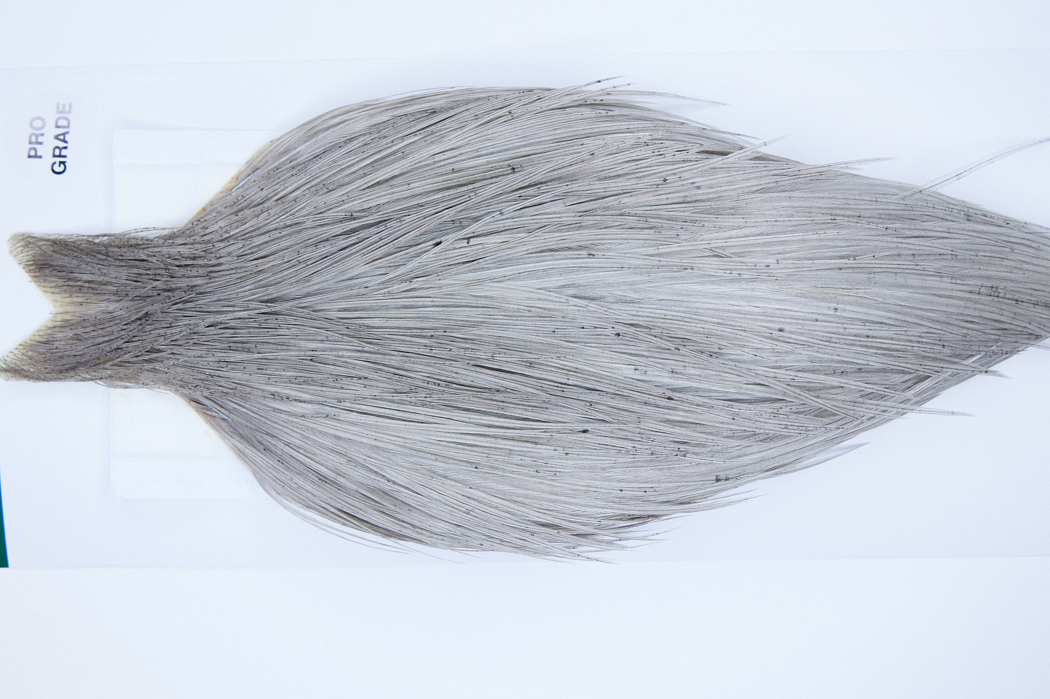 1203 Heber Miner Pro Grade Rooster Cape of a Light Grey Dun color. This dry fly hackle ties predominately sizes 10-20. The photos shown are the actual photos of this dry fly Rooster Cape.