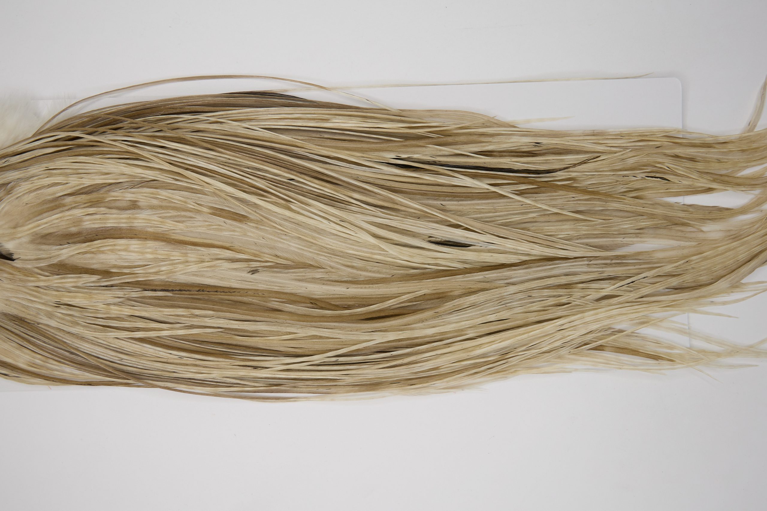 12060 is a Hebert Minor Bronze Grade Rooster Saddle of Pale Watery Dun color that ties predominately size 12-18. The image shown is an actual photo of this dry fly saddle. This is NEW UNUSED HACKLE.