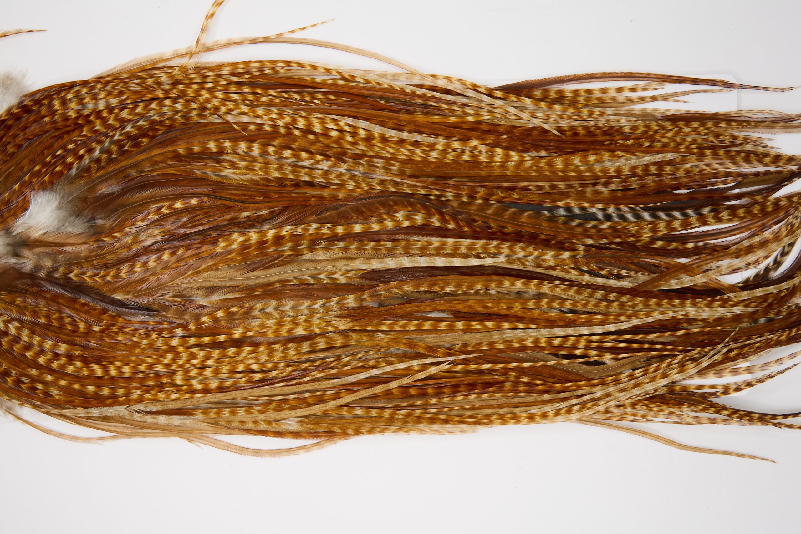 12071 Hebert Dry Fly Hackle Pro Grade Rooster Saddle Barred Dark Ginger Ties Size 12-16