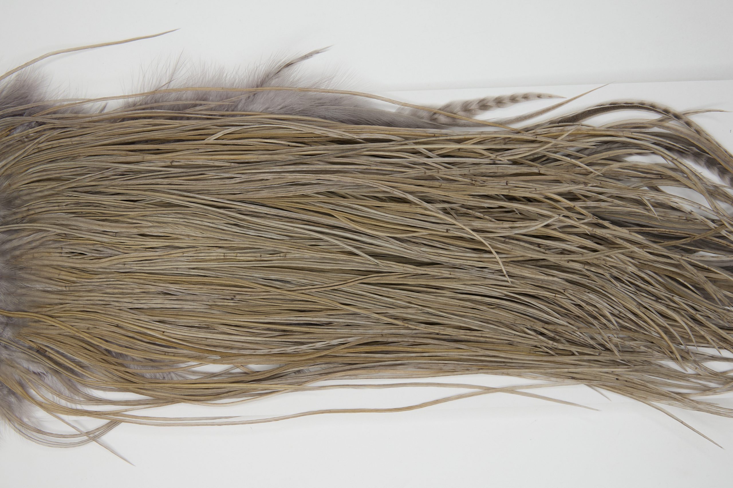 12164 is a Hebert Minor Pro Grade Rooster Saddle of Medium Grey Dun color that ties predominately size 14-18. The image shown is an actual photo of this dry fly saddle. This is NEW UNUSED HACKLE.