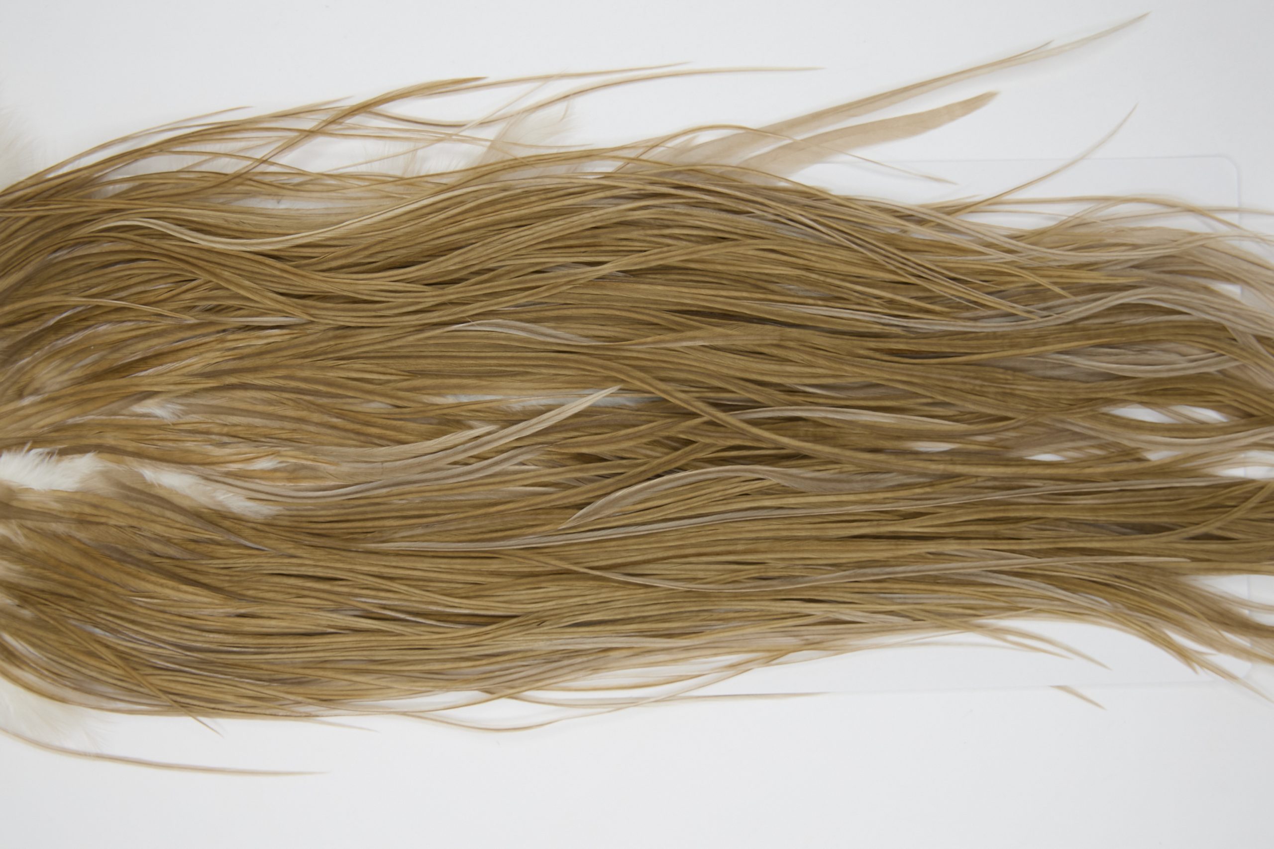 12172 is a Hebert Minor Pro Grade Rooster Saddle of Medium Brown Dun color that ties predominately size 14-18. The image shown is an actual photo of this dry fly saddle. This is NEW UNUSED HACKLE.