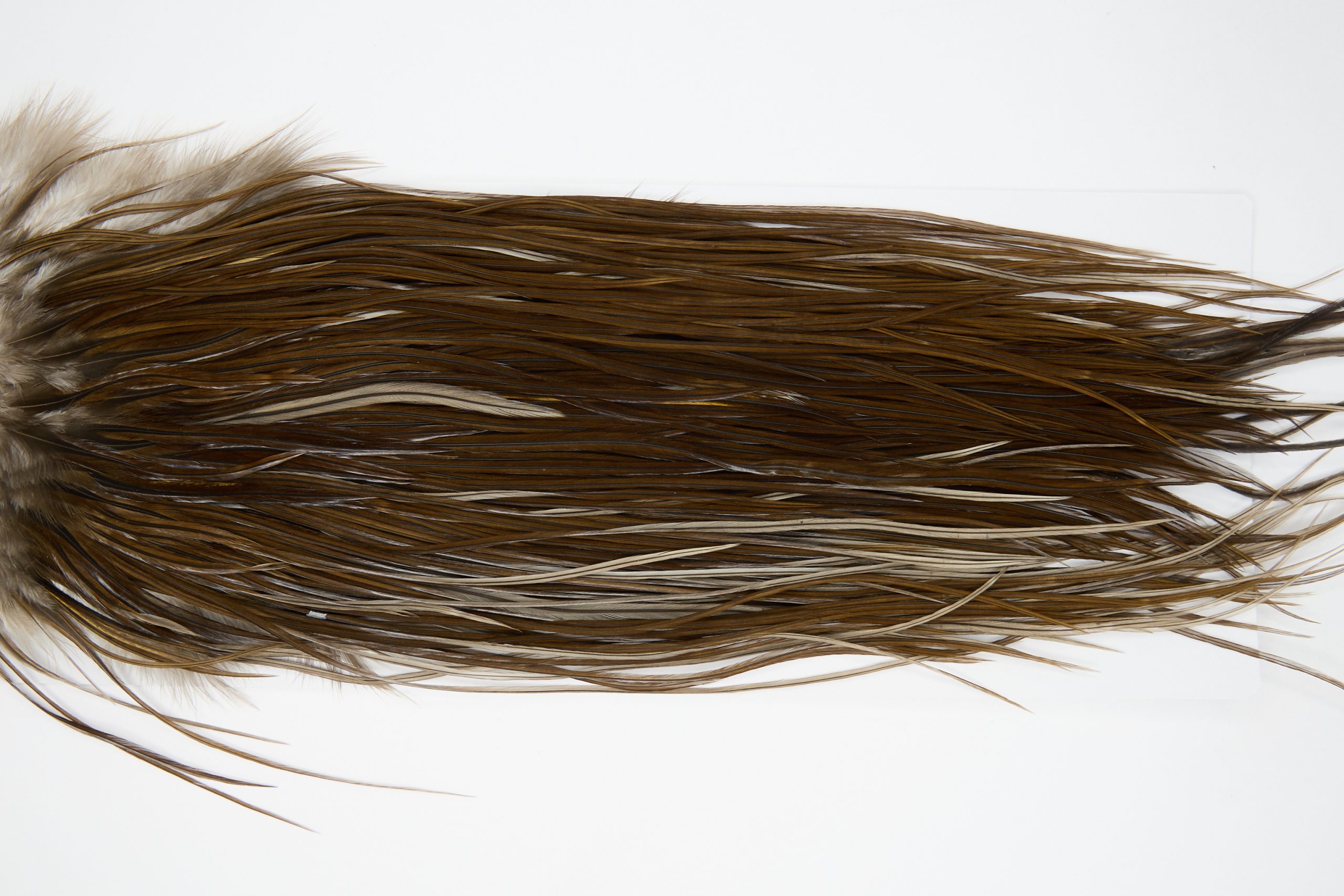 12186 is a Hebert Minor Pro Grade Rooster Saddle of Dark Brown Dun color that ties predominately size 14-16. The image shown is an actual photo of this dry fly saddle. This is NEW UNUSED HACKLE.
