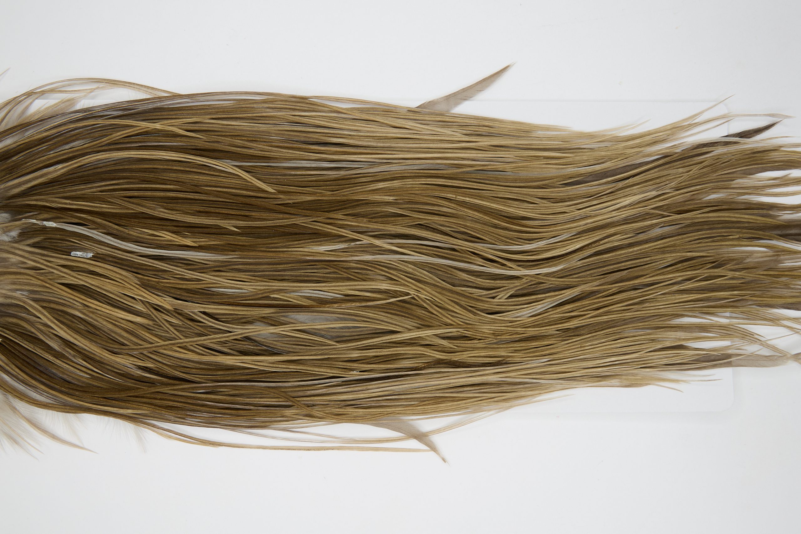 12220 is a Hebert Minor Bronze Grade Rooster Saddle of Brown Grey Dun color that ties predominately size 14-16. The image shown is an actual photo of this dry fly saddle. This is NEW UNUSED HACKLE.