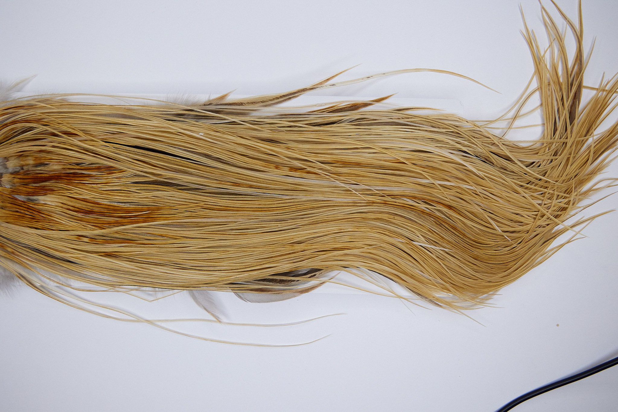 1319 Heber Miner Silver Grade Rooster Saddle of a Light Ginger color. This dry fly hackle ties predominately sizes 14-18. The photo shown is an actual photo of this hackle.