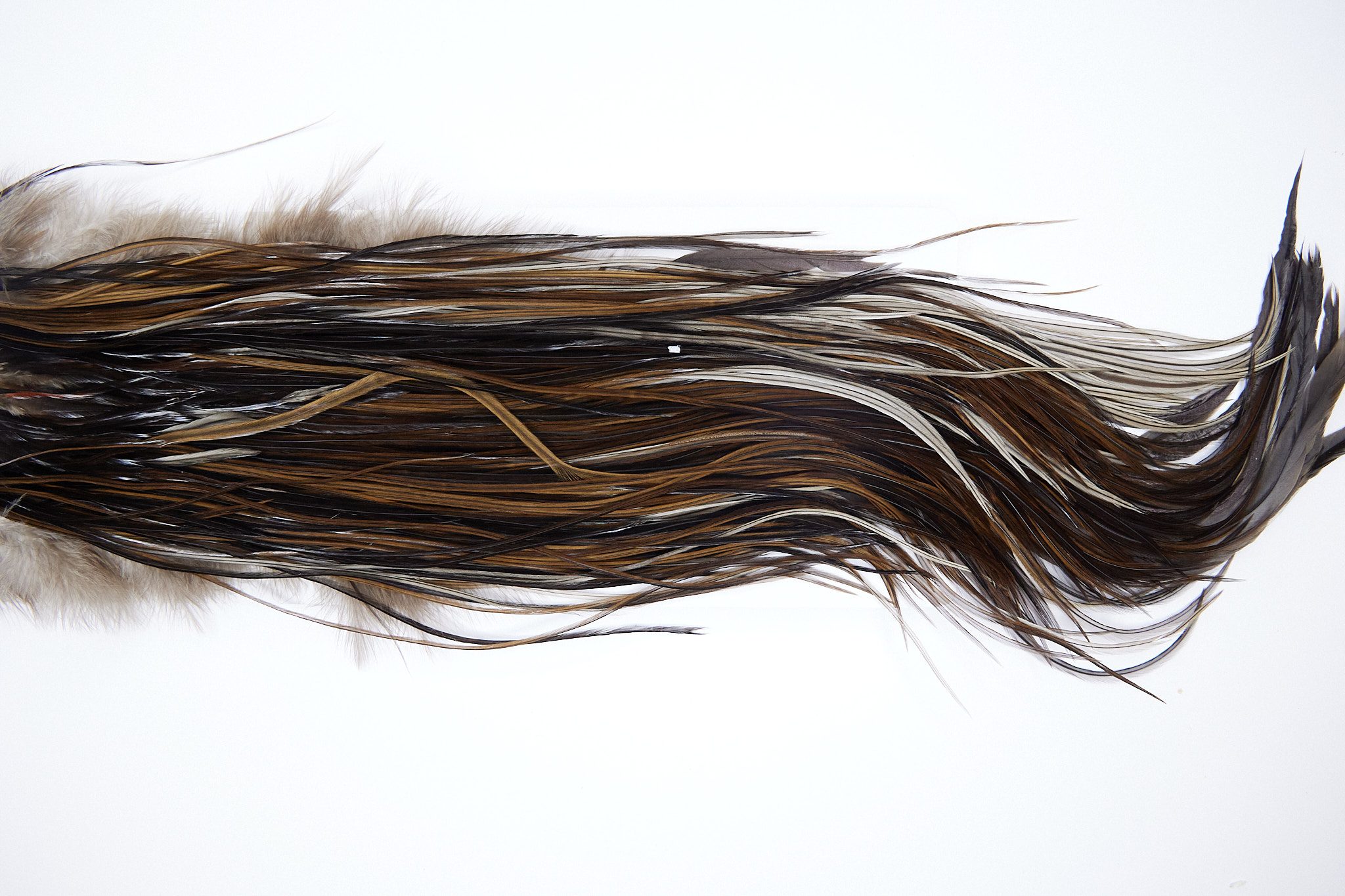 1339 Heber Miner Silver Grade Rooster Saddle of a Dark Brown Dun color. This dry fly hackle ties predominately sizes 14-16. The photo shown is an actual photo of this hackle.