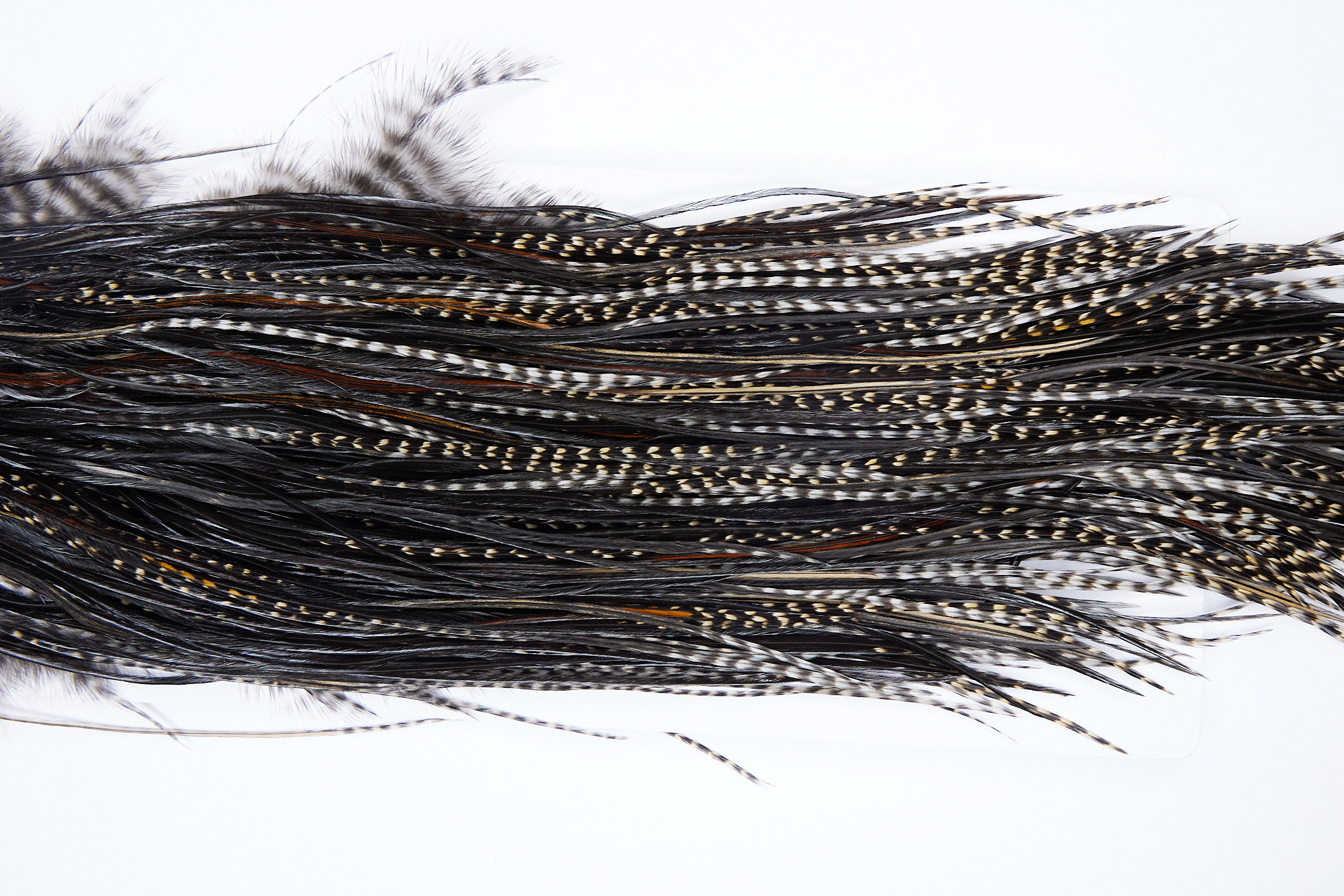 1343 Heber Miner Silver Grade Rooster Saddle of a Variant color. This dry fly hackle ties predominately sizes 12-16. The photo shown is an actual photo of this hackle.