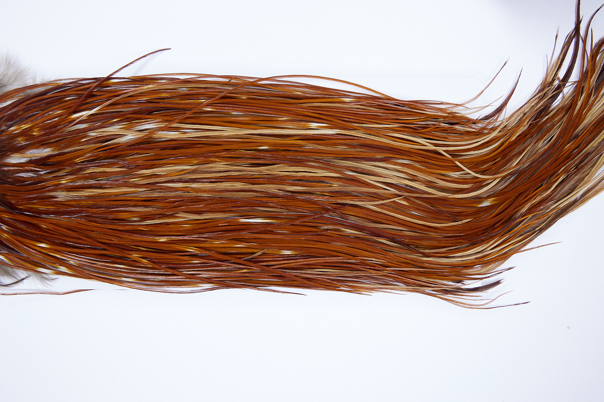 1377 Hebert Dry Fly Hackle, Bronze Grade Rooster Saddle Medium Brown Ties Sizes 14-16