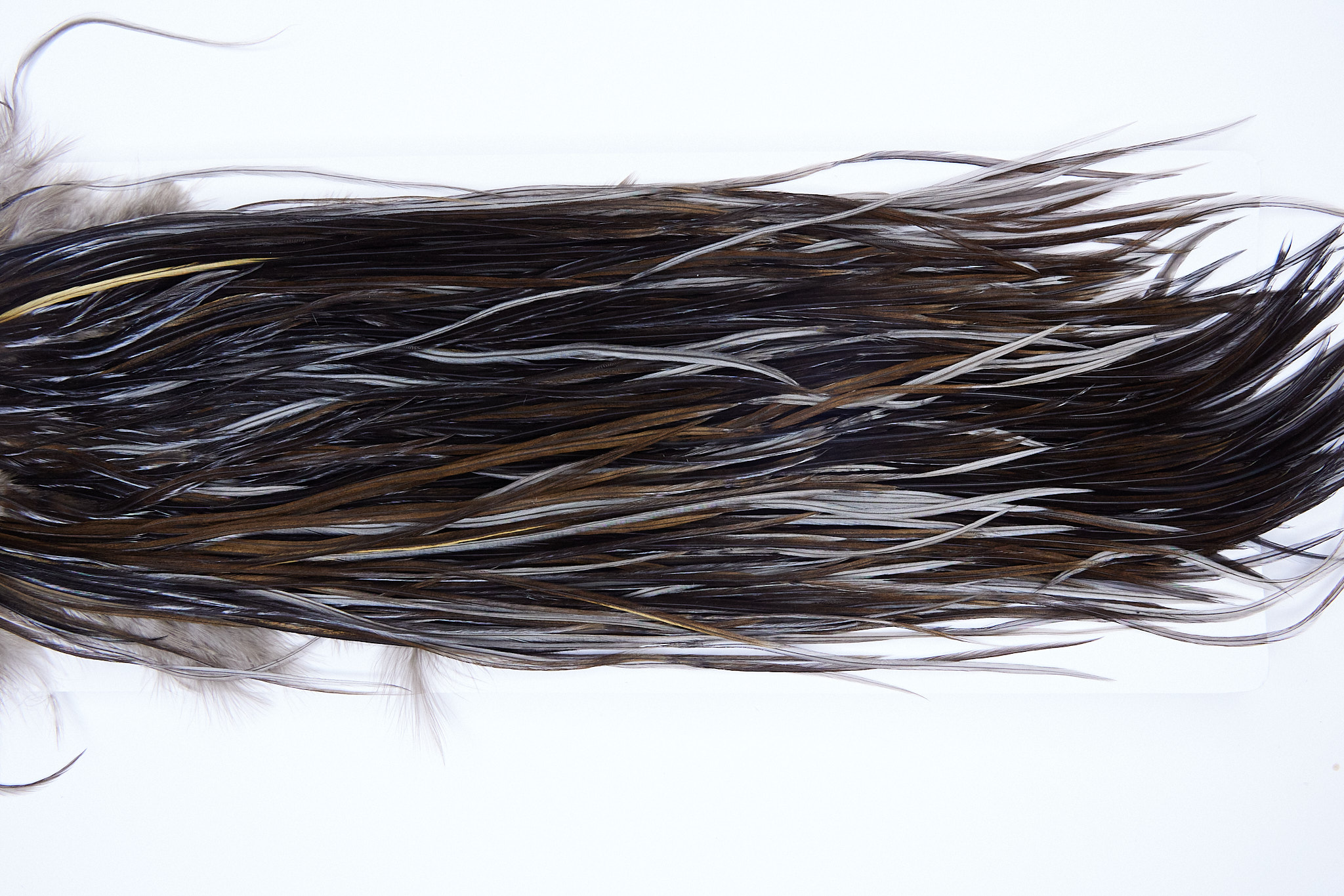 1387 Heber Miner Pro Grade Rooster Saddle of a Dark Brown Dun color. This dry fly hackle ties predominately sizes 12-14. The photo shown is an actual photo of this hackle.
