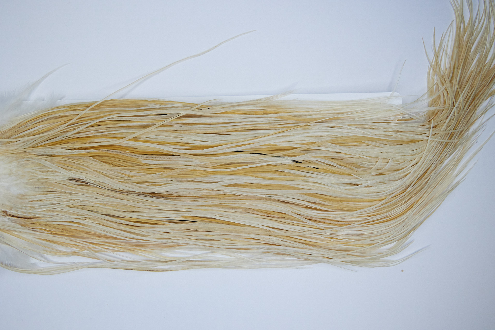 1546 Whiting Gold Grade Rooster Saddle of a Variant color. This dry fly hackle ties predominately sizes 14-16. The image shown is an actual photo of this hackle.