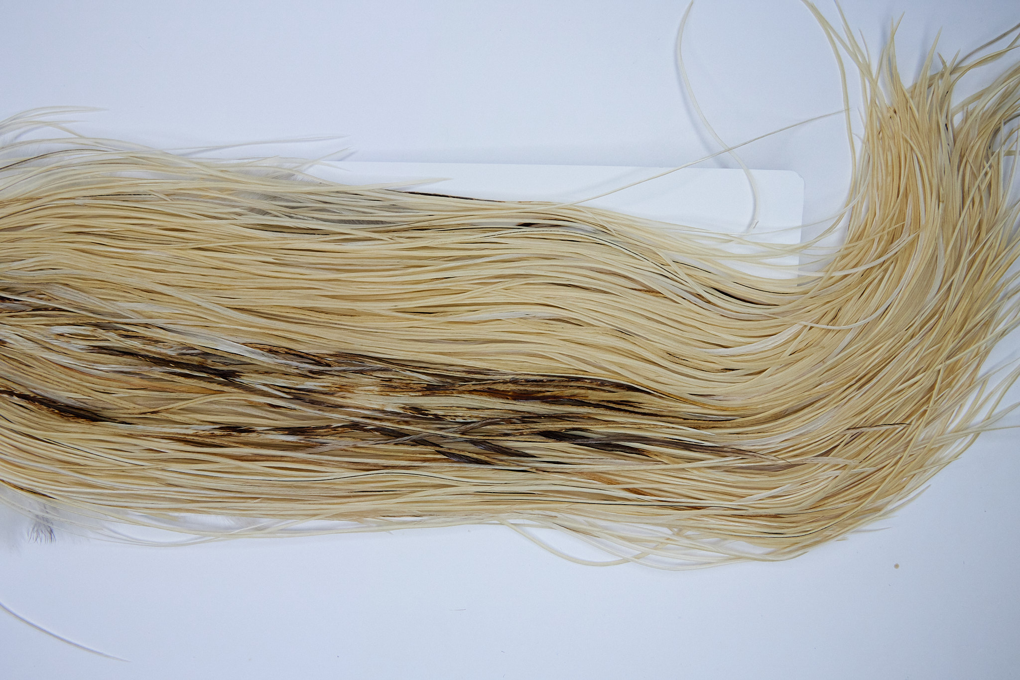 1593 Whiting Gold Grade Midge Saddle of a Light Ginger color. This dry fly hackle ties predominately sizes 16-18. The image shown is an actual photo of this hackle.