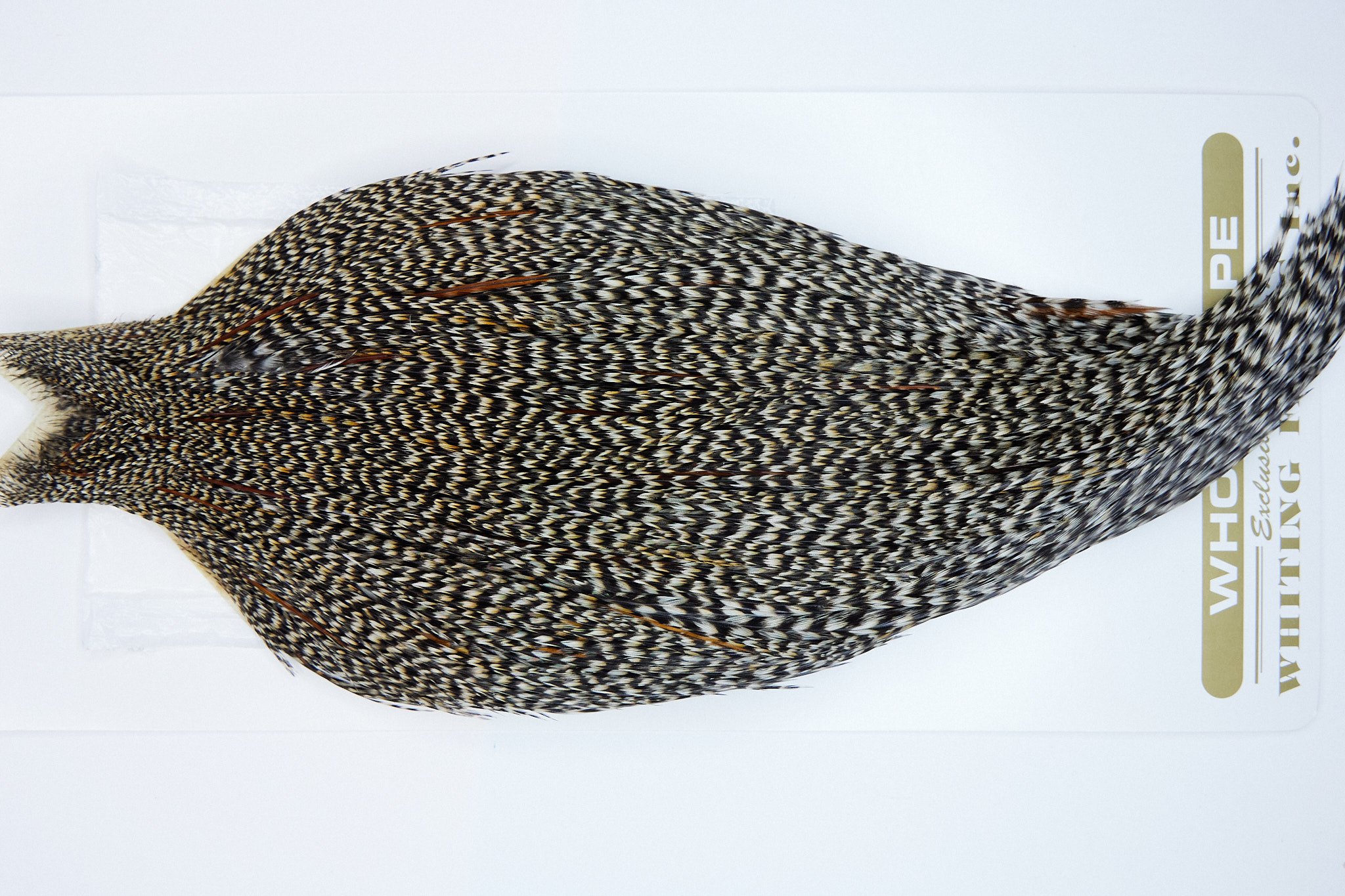 1725 is a Heritage 1 Grade Rooster Cape of Grizzly Variant color that ties predominately size 8-22. The image shown is an actual photo of this dry fly cape. This is NEW UNUSED HACKLE.