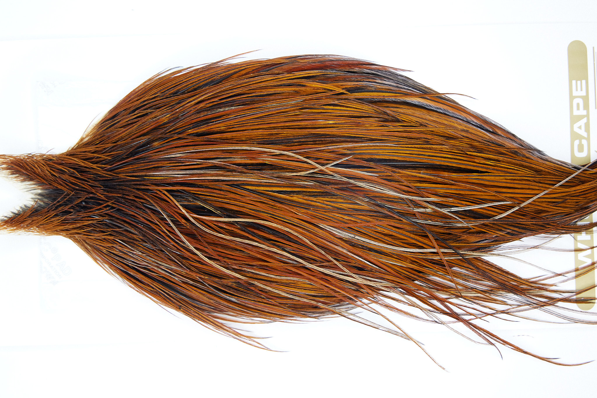 1729 is a Heritage 1 Grade Rooster Cape of Brown color that ties predominately size 8-22. The image shown is an actual photo of this dry fly cape. This is NEW UNUSED HACKLE.