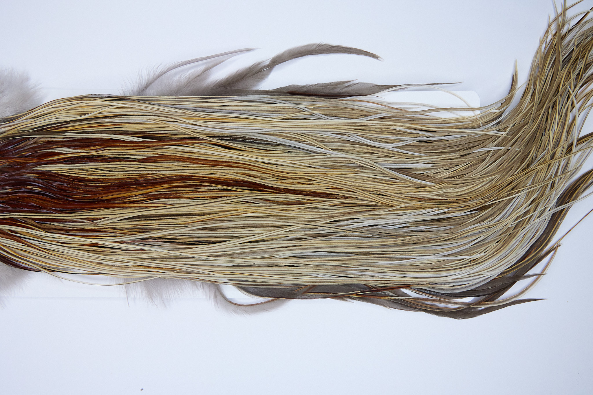 1796 is a Heritage 1 Grade Rooster Saddle of Honey Dun color that ties predominately size 14-16. The image shown is an actual photo of this dry fly saddle. This is NEW UNUSED HACKLE.