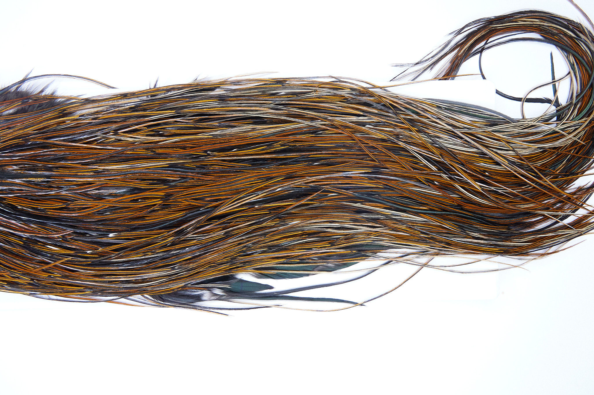 1800 is a Heritage 1 Grade Rooster Saddle of Furnace color that ties predominately size 16-18. The image shown is an actual photo of this dry fly saddle. This is NEW UNUSED HACKLE.