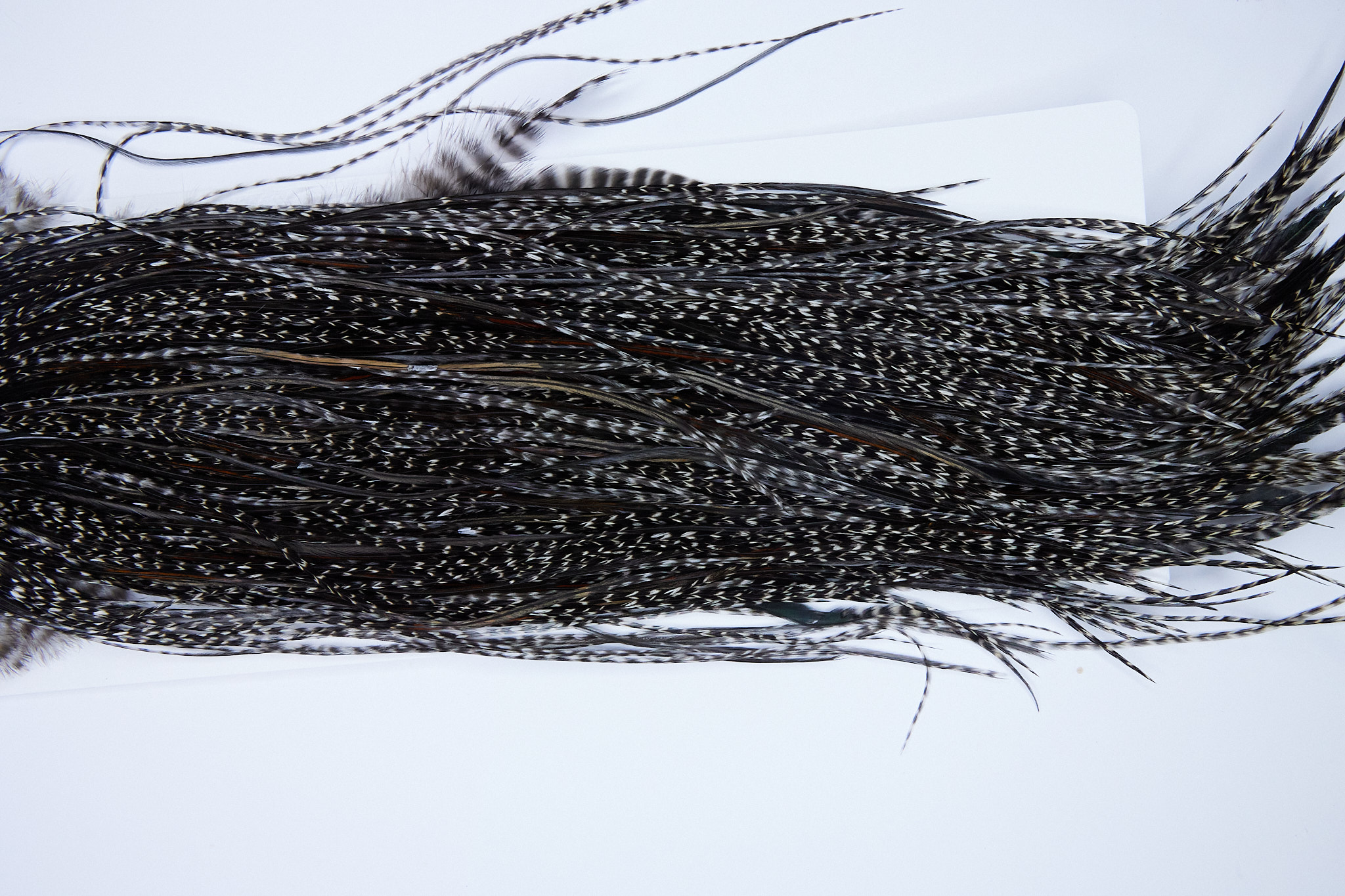 1883 is a Heritage 2 Grade Rooster Saddle of Variant color that ties predominately size 14-16. The image shown is an actual photo of this dry fly saddle. This is NEW UNUSED HACKLE.