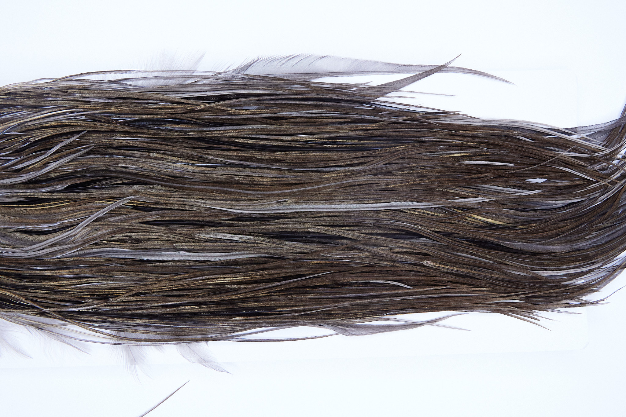2071 is a Heritage 3 Grade Rooster Saddle of Heritage Vermiculated Dun color that ties predominately size 14. The image shown is an actual photo of this dry fly saddle. This is NEW UNUSED HACKLE.