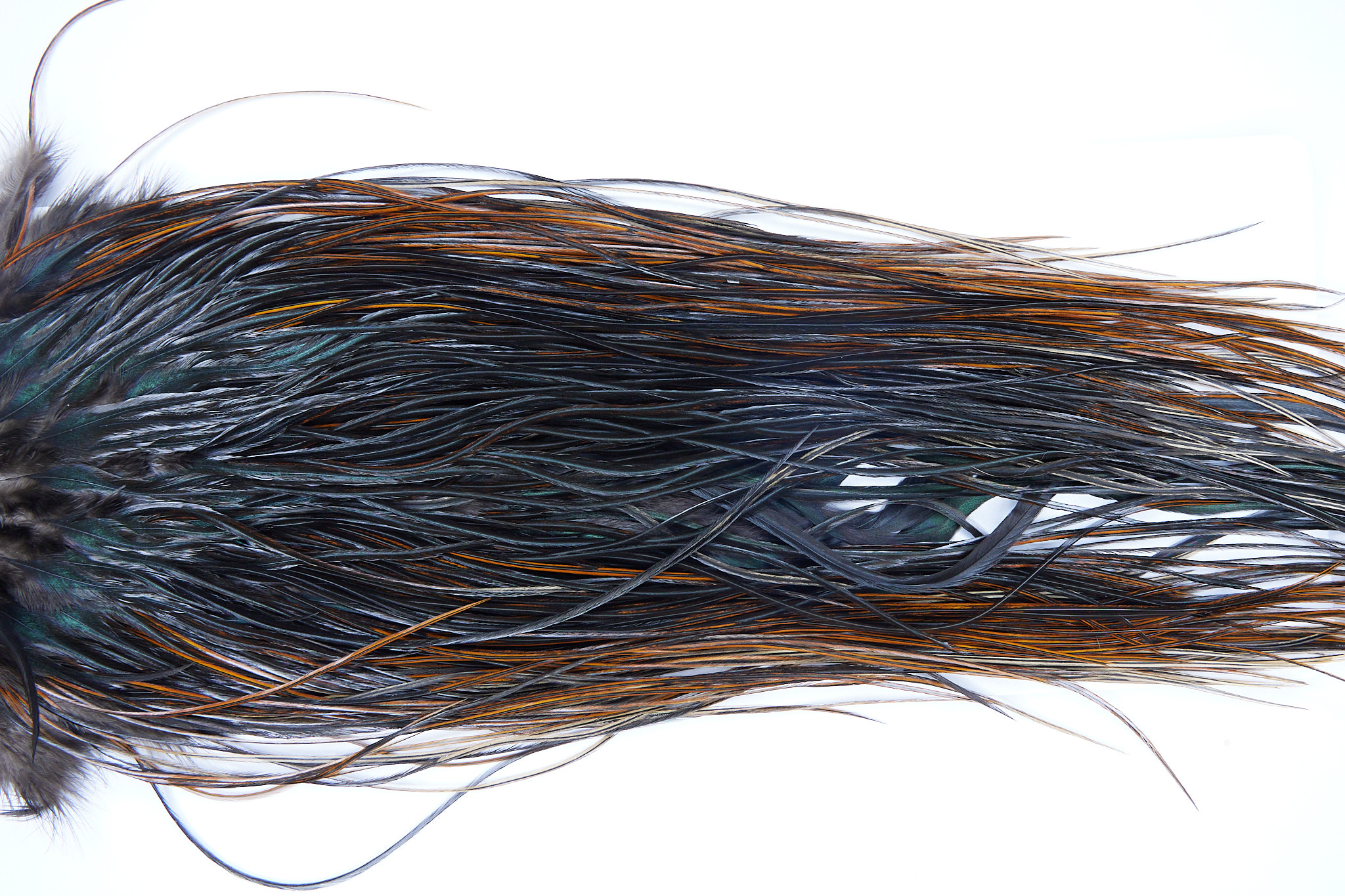 2208 is a Yellowstone 2 Grade Rooster Saddle of Furnace color that ties predominately size 16-18. The image shown is an actual photo of this dry fly saddle. This is NEW UNUSED HACKLE.
