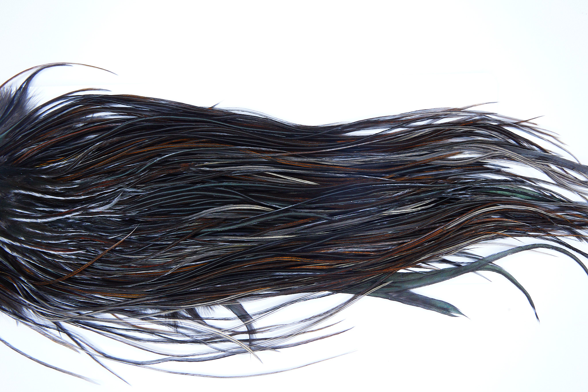 2210 is a Yellowstone 2 Grade Rooster Saddle of Furnace color that ties predominately size 14-16. The image shown is an actual photo of this dry fly saddle. This is NEW UNUSED HACKLE.
