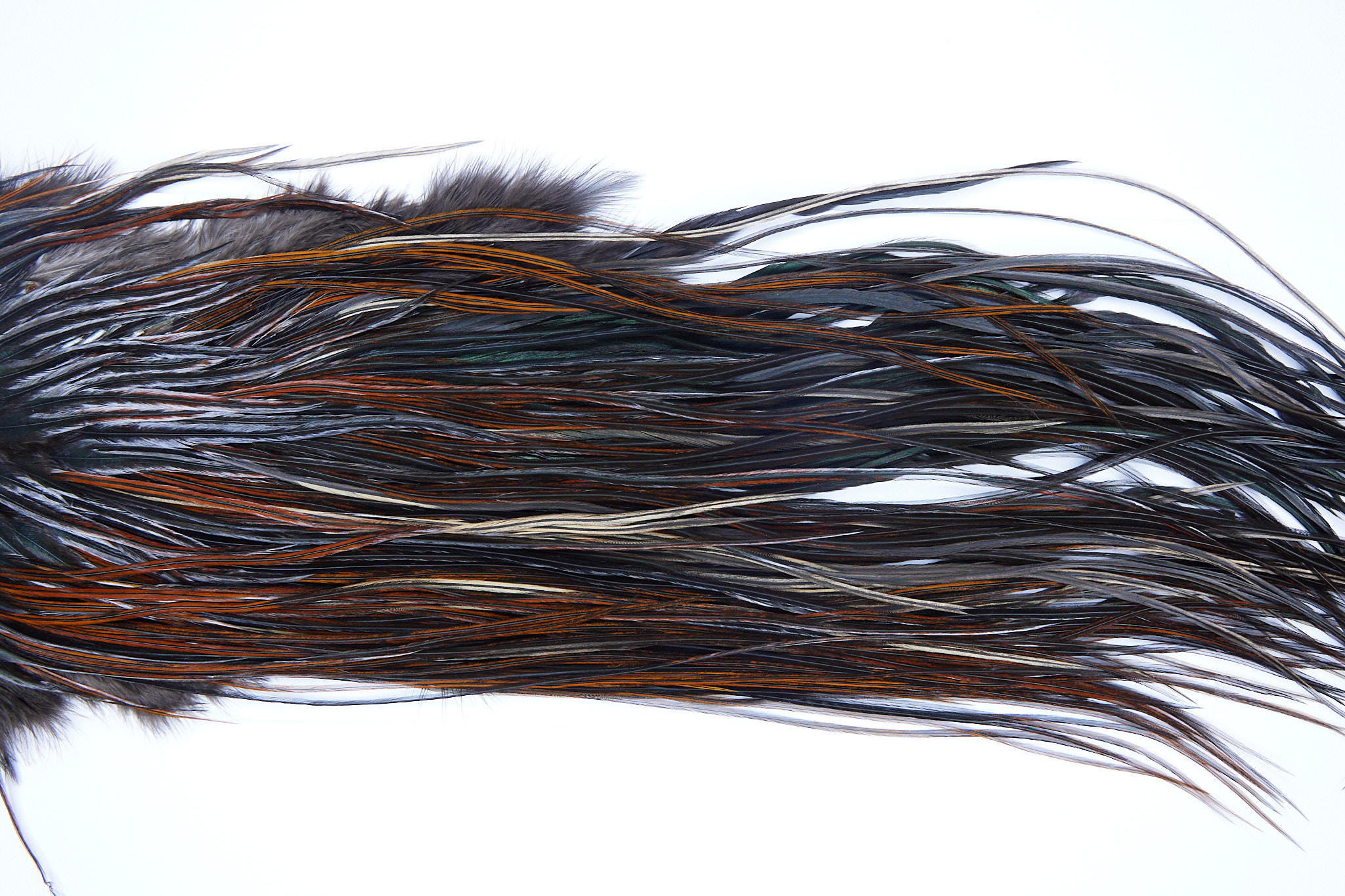 2323 is a Yellowstone Grade 3 Rooster Saddle of Furnace color that ties predominately size 14-16. The image shown is an actual photo of this dry fly saddle. This is NEW UNUSED HACKLE.