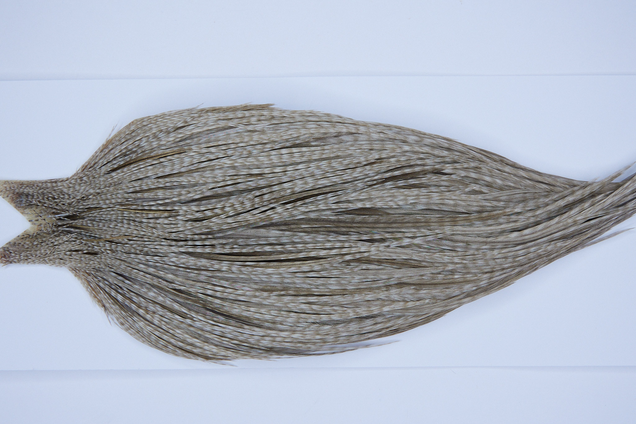 2358is a Yellowstone 1 Grade Rooster Cape of Dun Grizzly color that ties predominately size 10-18. The image shown is an actual photo of this dry fly cape. This is NEW UNUSED HACKLE.