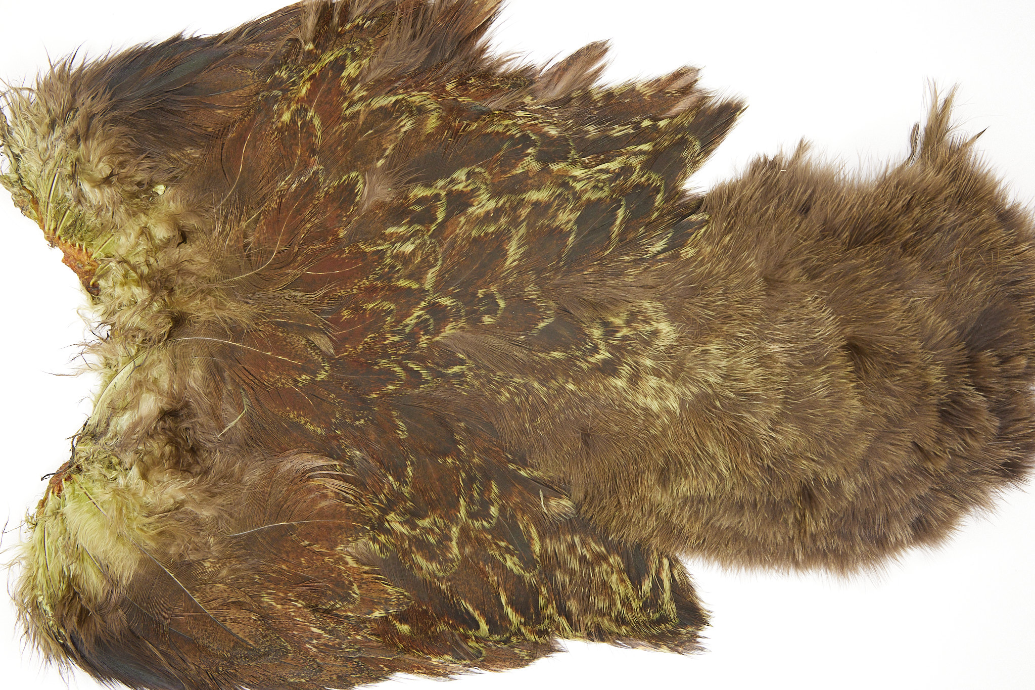 2519 is a Coq De Leon Rooster Cape of CDL Olive color. The image shown is an actual photo of this dry fly saddle. This is NEW UNUSED HACKLE.