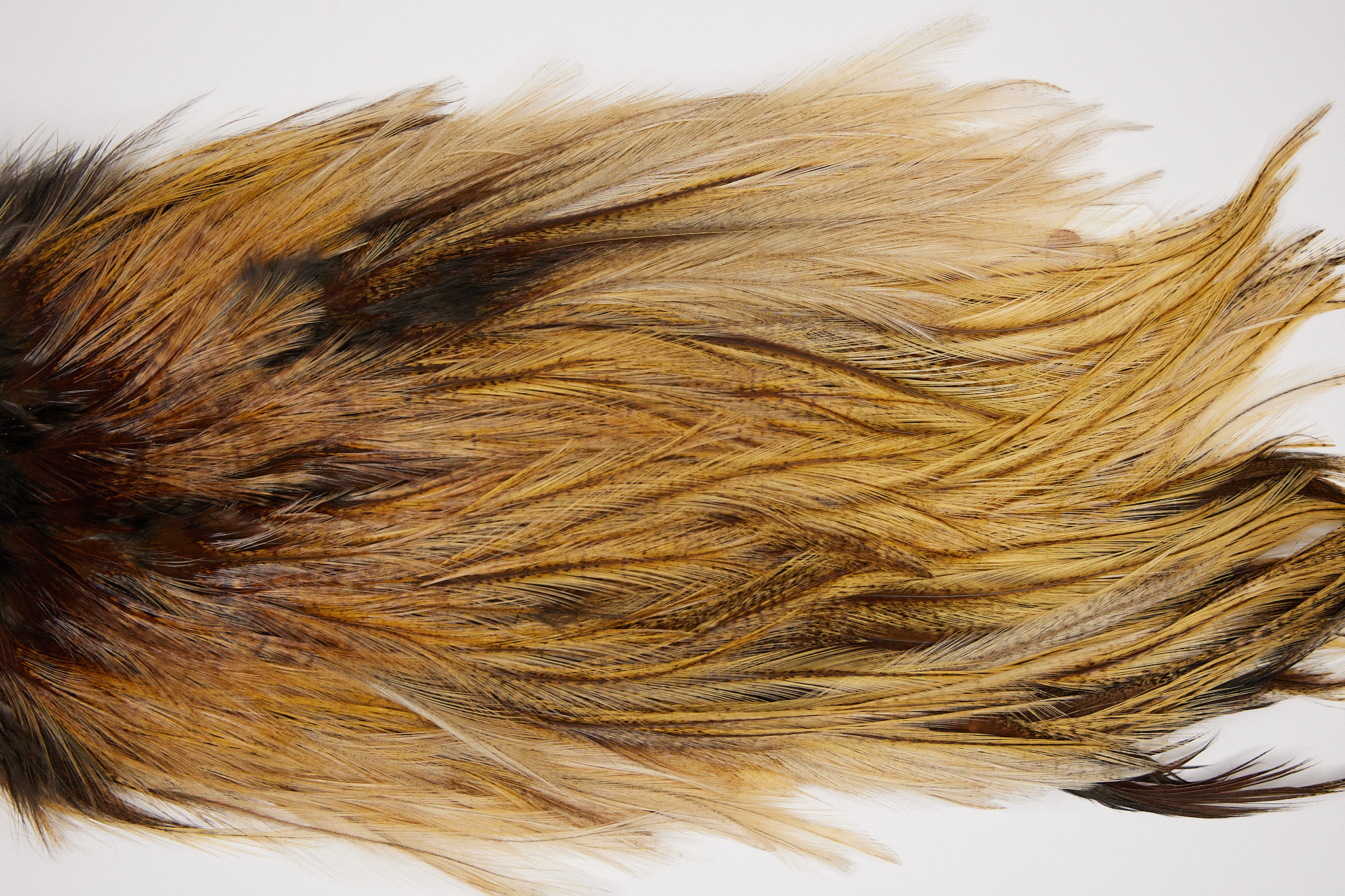 2551 is a Coq De Leon Silver Grade Rooster Cape of Medium Ginger color that ties predominately size None. The image shown is an actual photo of this dry fly saddle. This is NEW UNUSED HACKLE.