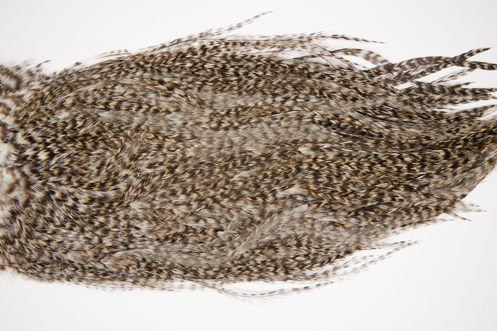 2558 is a Coq De Leon Gold Grade Rooster Cape of CDL Grizzly color that ties predominately size 4-8. The image shown is an actual photo of this dry fly saddle. This is NEW UNUSED HACKLE.