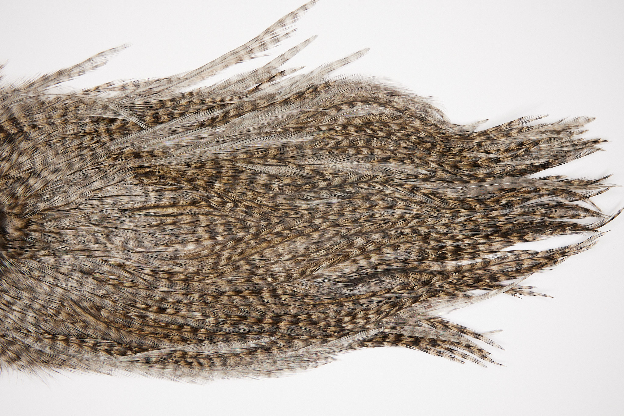 2581 is a Coq De Leon Silver Grade Rooster Cape of Grizzly Pardo color that ties predominately size 4-6. The image shown is an actual photo of this dry fly saddle. This is NEW UNUSED HACKLE.