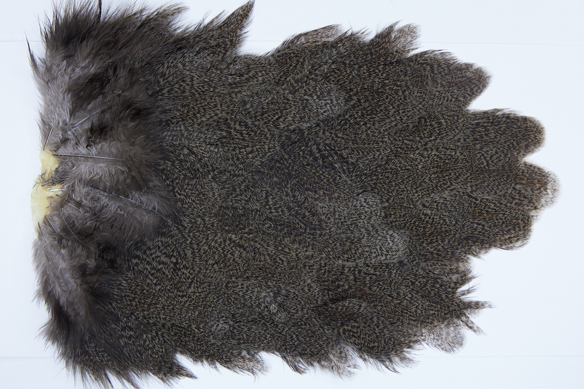 2628 is a Coq De Leon Hen Saddle of Brown Speckled color. The image shown is an actual photo of this saddle. This is NEW UNUSED HACKLE.