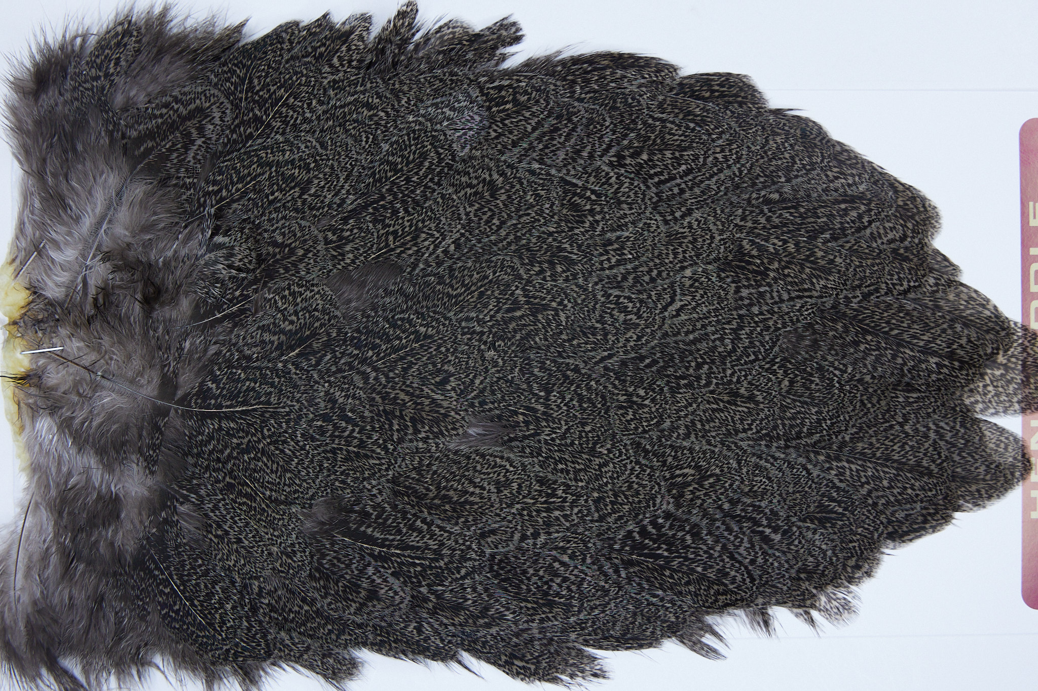 2632 is a Coq De Leon Hen Saddle of Brown Speckled color. The image shown is an actual photo of this saddle. This is NEW UNUSED HACKLE.