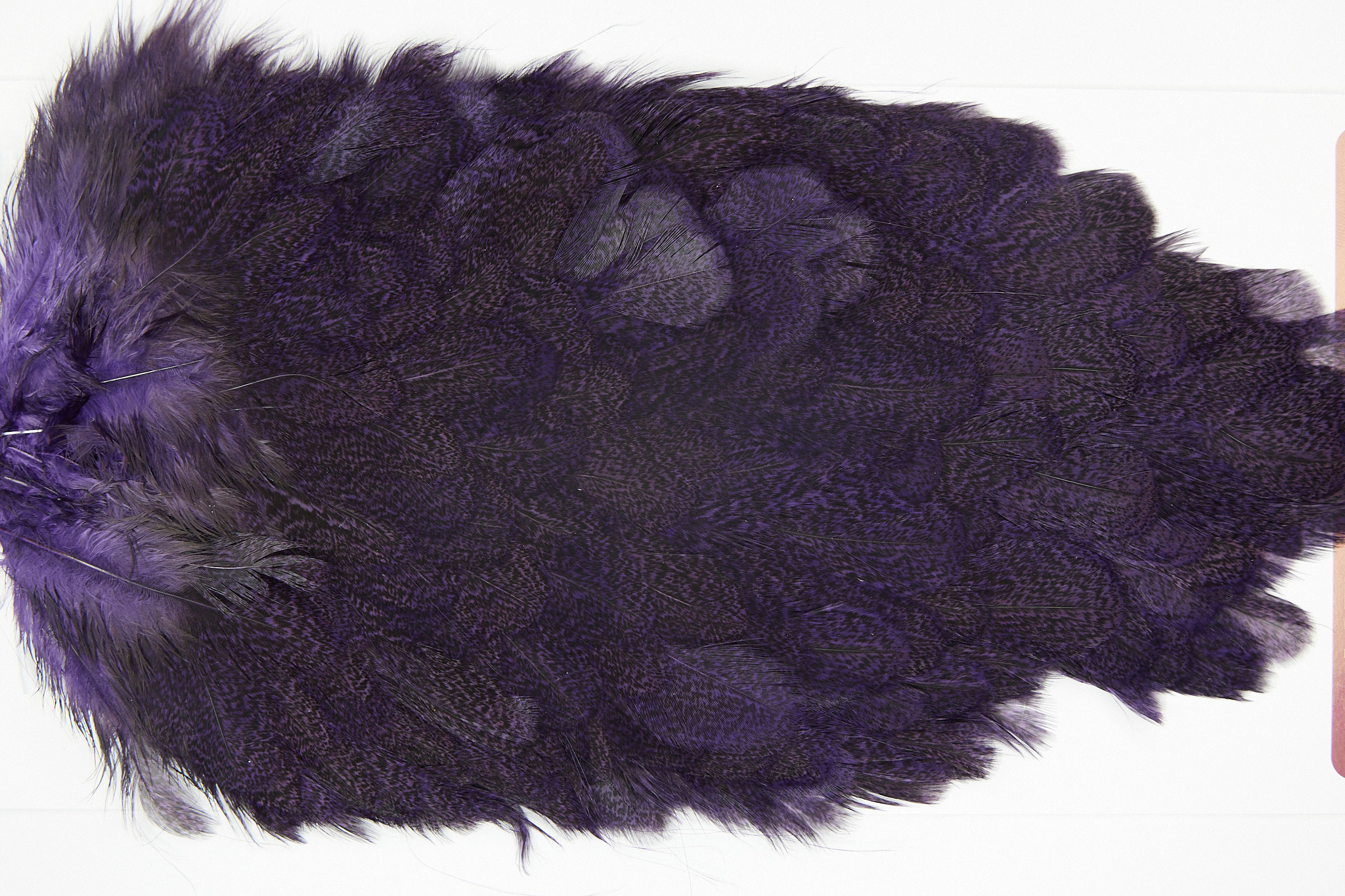 2667 is a Coq De Leon Hen Saddle of Purple Speckled color. The image shown is an actual photo of this saddle. This is NEW UNUSED HACKLE.