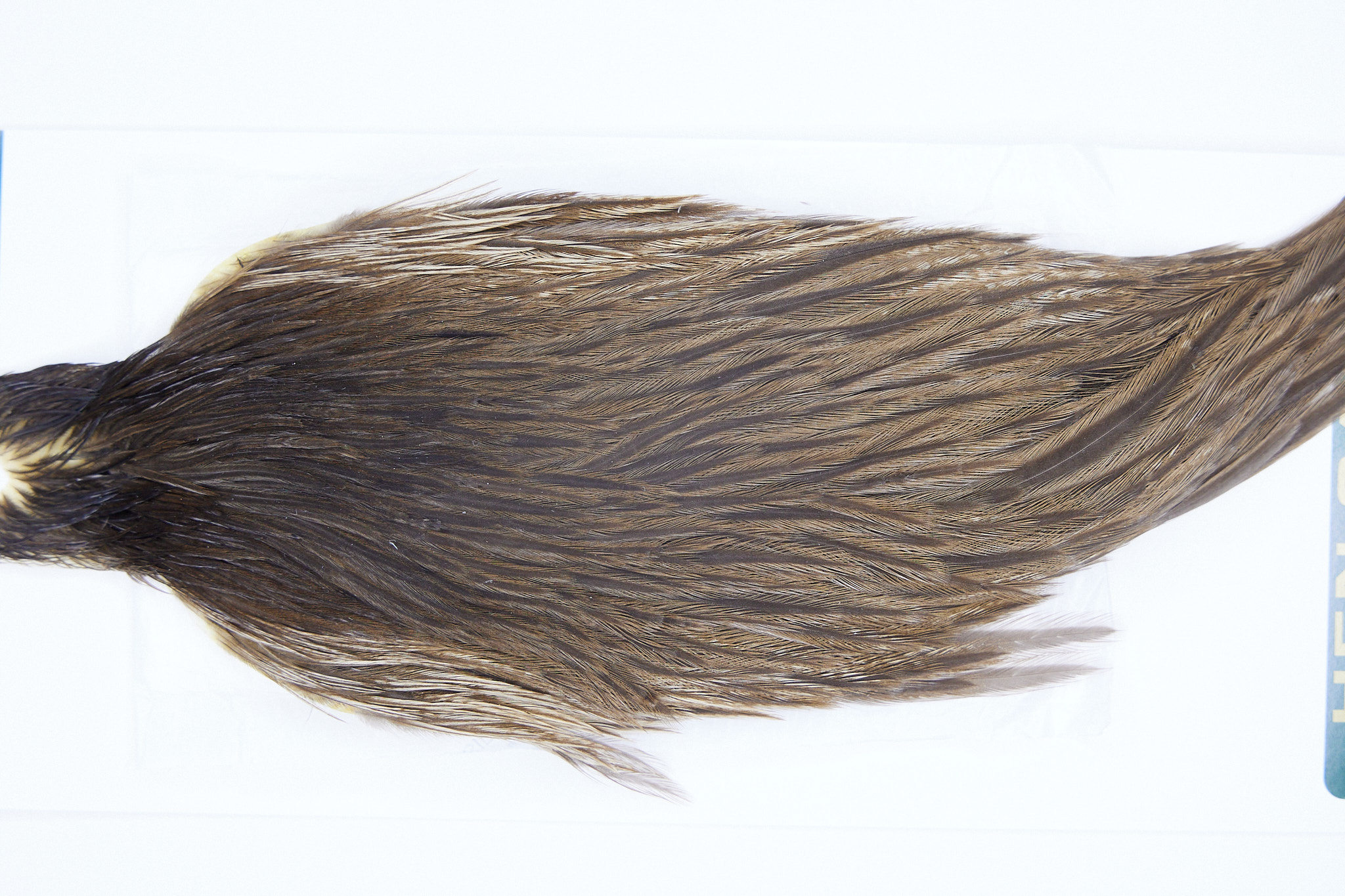 2811 is a Hebert Minor Hen Cape of Dark Brown Dun color. The image shown is an actual photo of this cape. This is NEW UNUSED HACKLE.