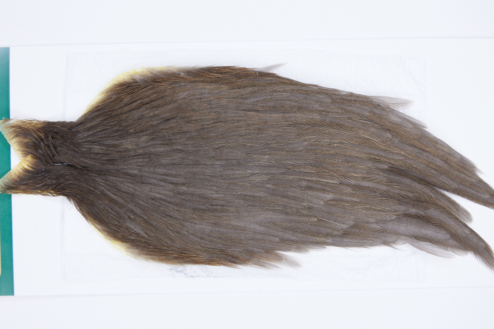 2815 is a Hebert Minor Hen Cape of Dark Grey Dun color. The image shown is an actual photo of this cape. This is NEW UNUSED HACKLE.