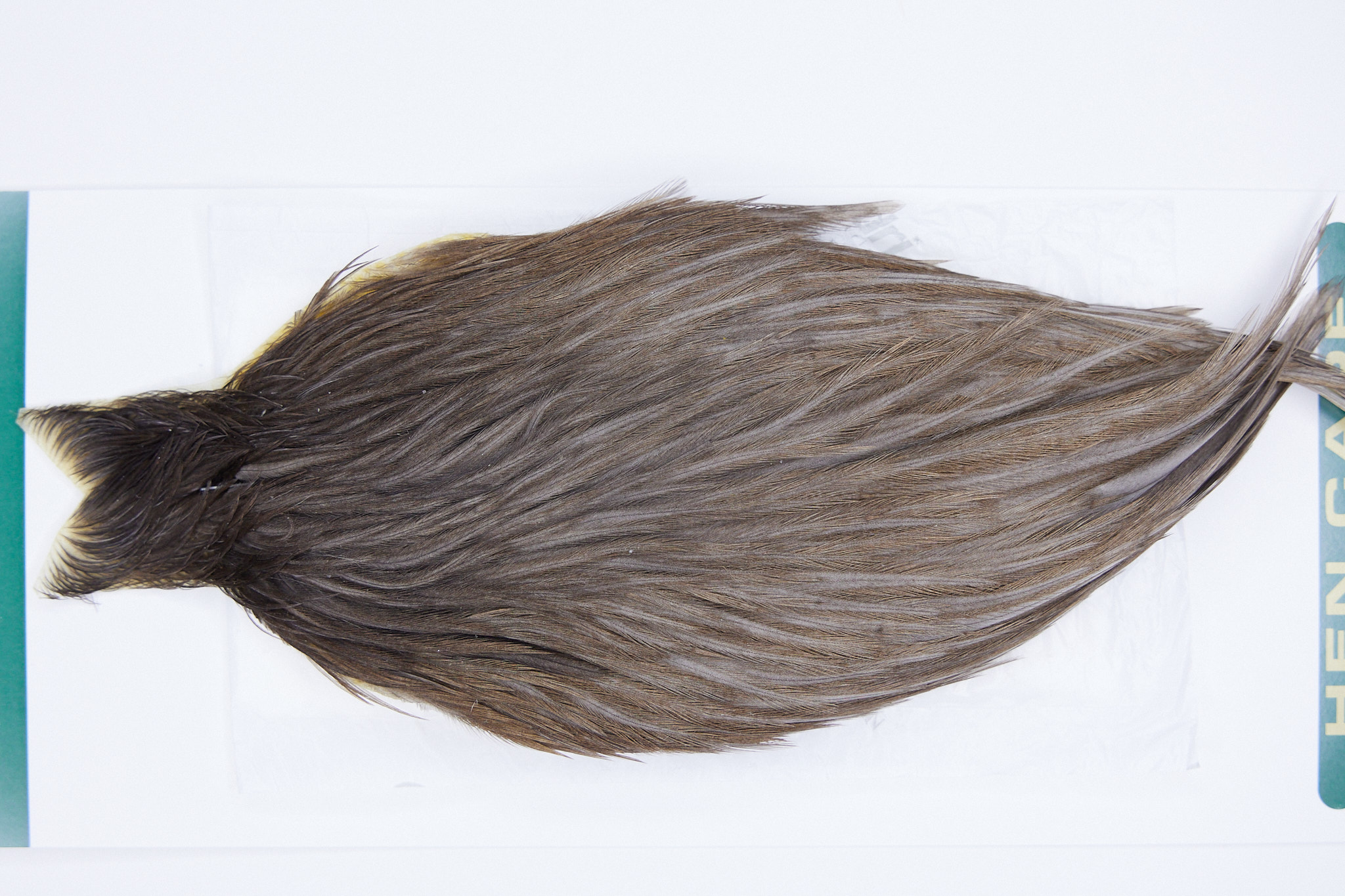 2821 is a Hebert Minor Hen Cape of Dark Grey Dun color. The image shown is an actual photo of this cape. This is NEW UNUSED HACKLE.