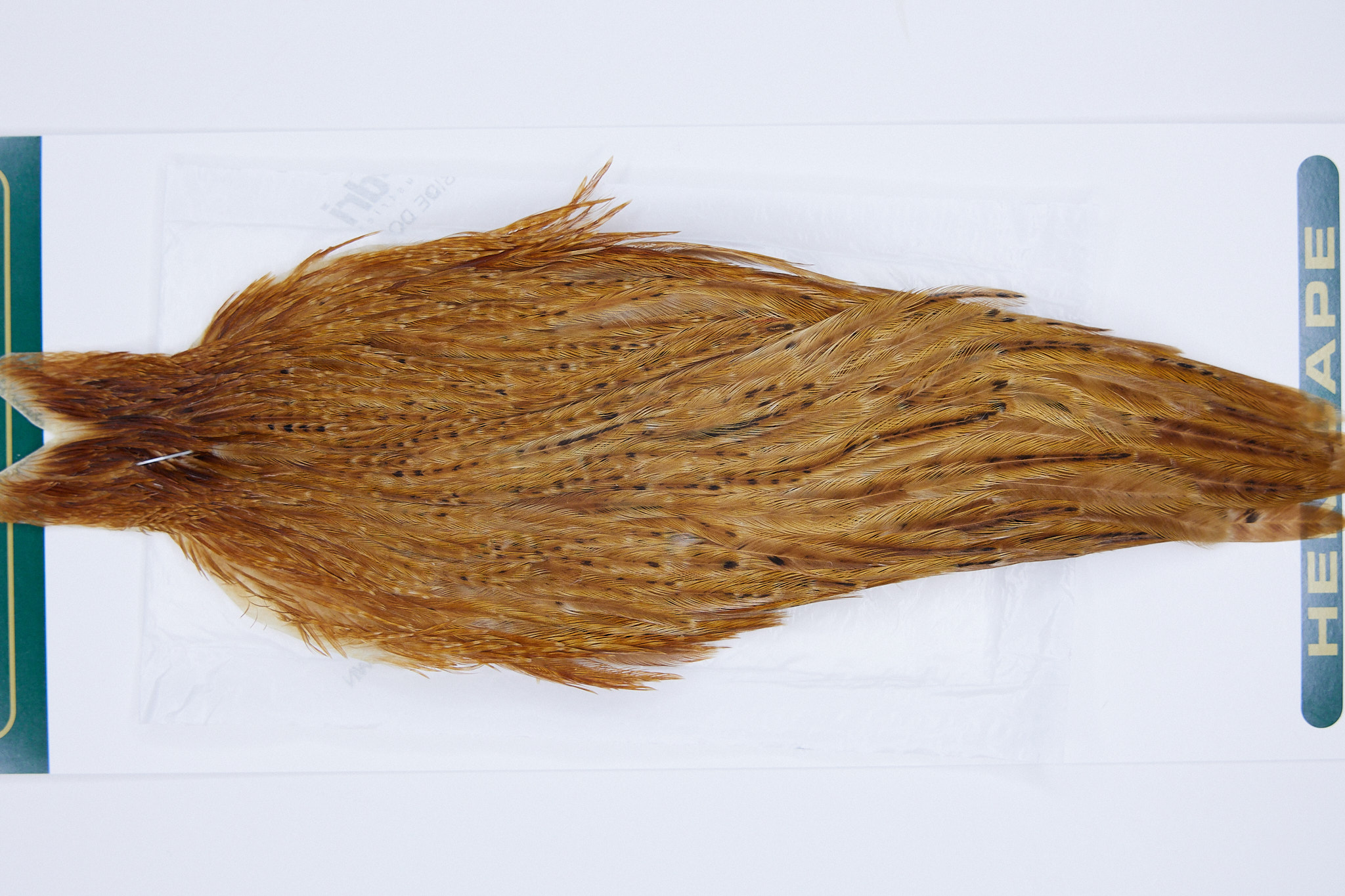 2831 is a Hebert Minor Hen Cape of Medium Ginger color. The image shown is an actual photo of this cape. This is NEW UNUSED HACKLE.