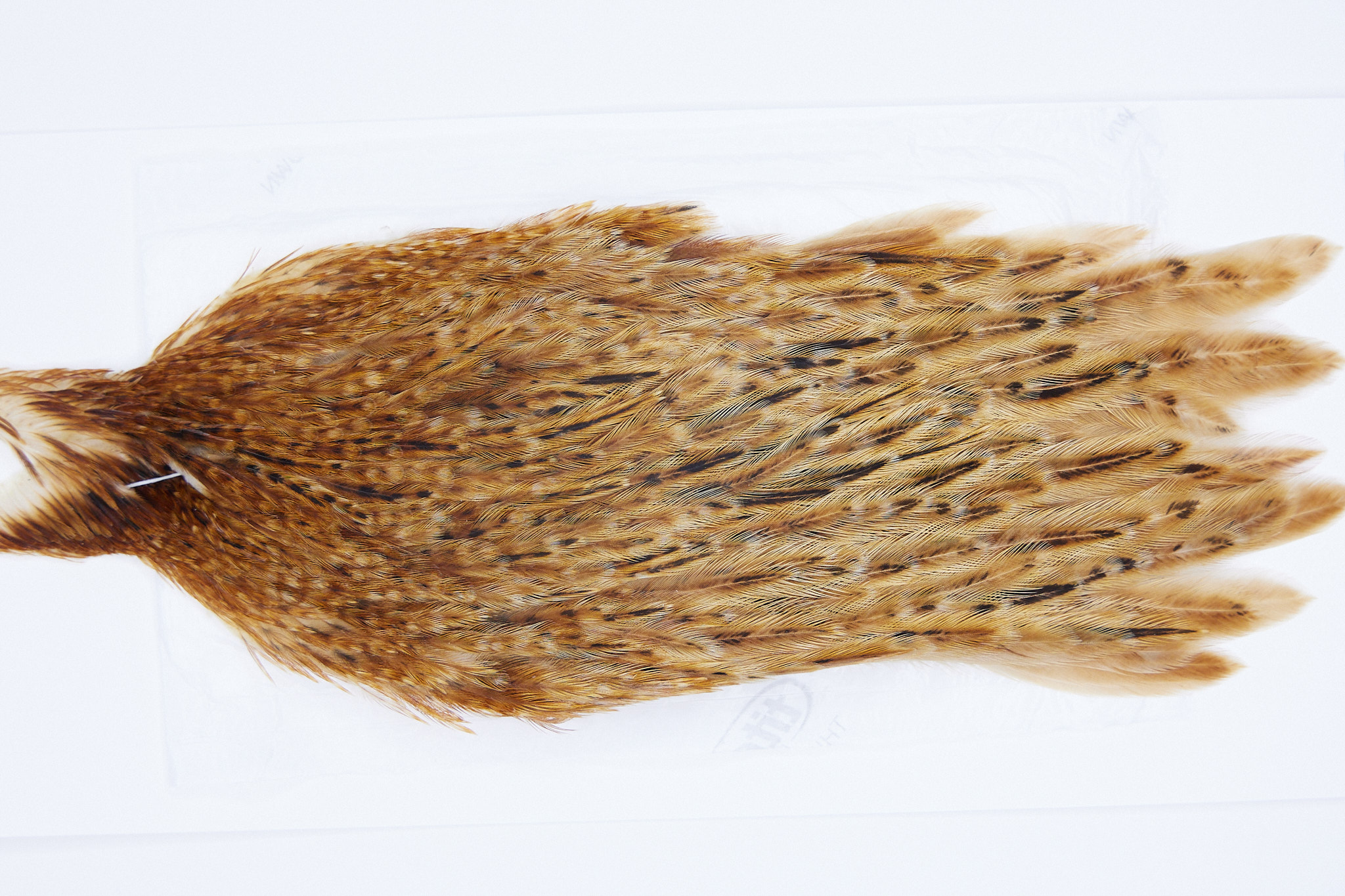 2836 is a Hebert Minor Hen Cape of Medium Ginger color. The image shown is an actual photo of this cape. This is NEW UNUSED HACKLE.