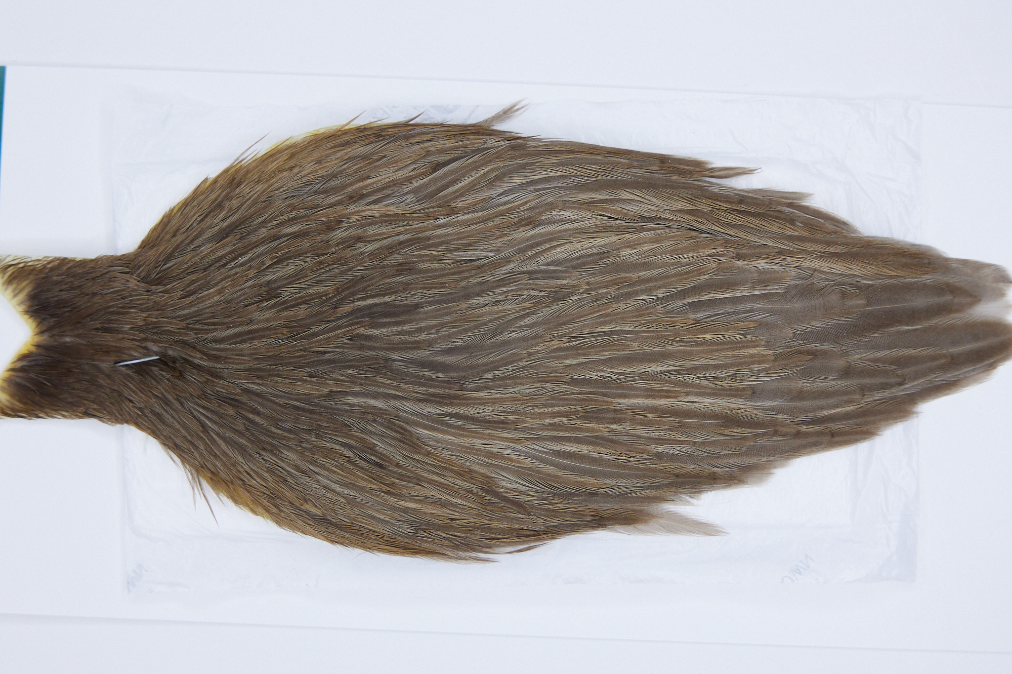 2856 is a Hebert Minor Hen Cape of Medium Brown Dun color. The image shown is an actual photo of this cape. This is NEW UNUSED HACKLE.