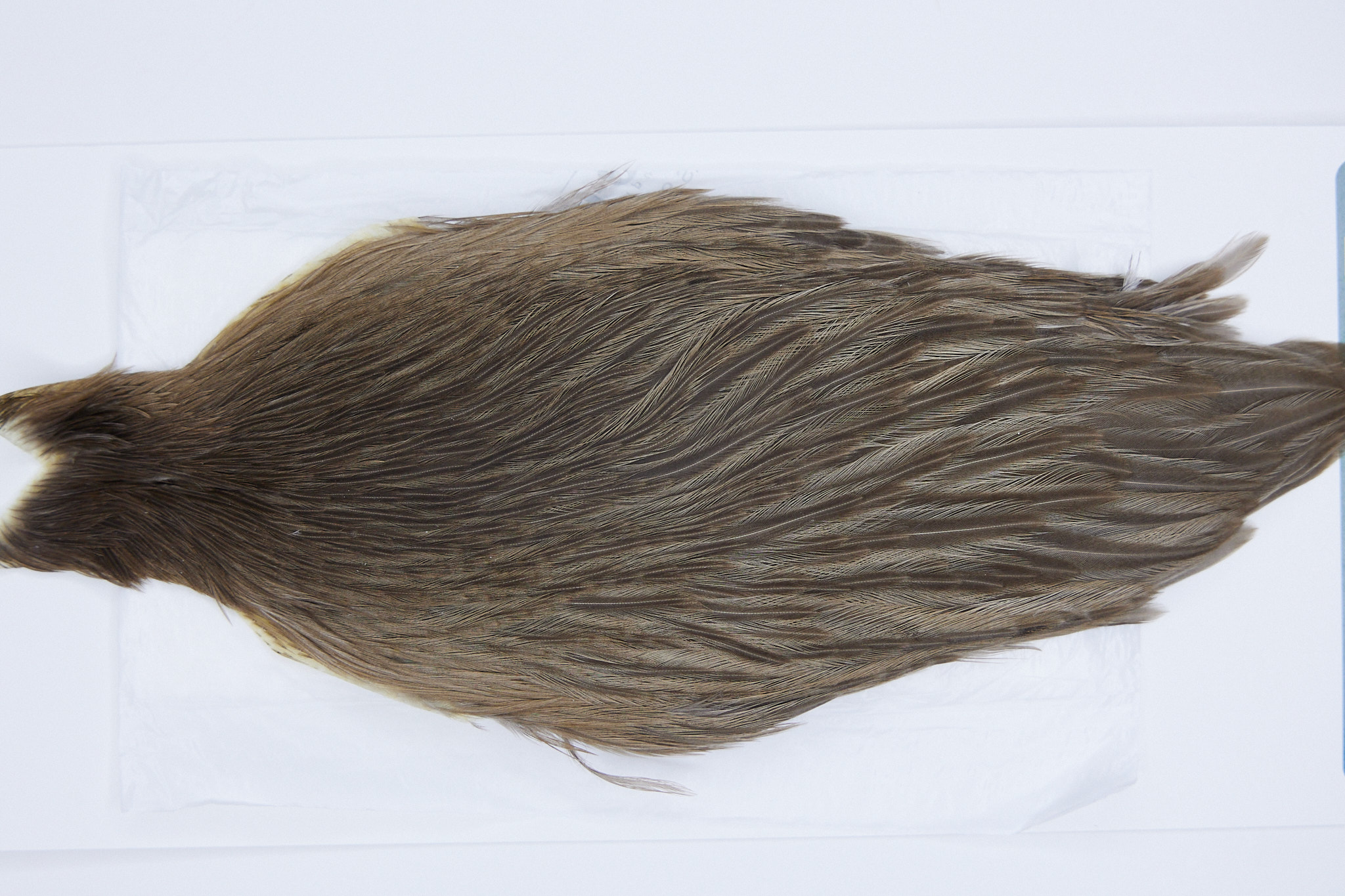 2863 is a Hebert Minor Hen Cape of Brown Grey Dun color. The image shown is an actual photo of this cape. This is NEW UNUSED HACKLE.
