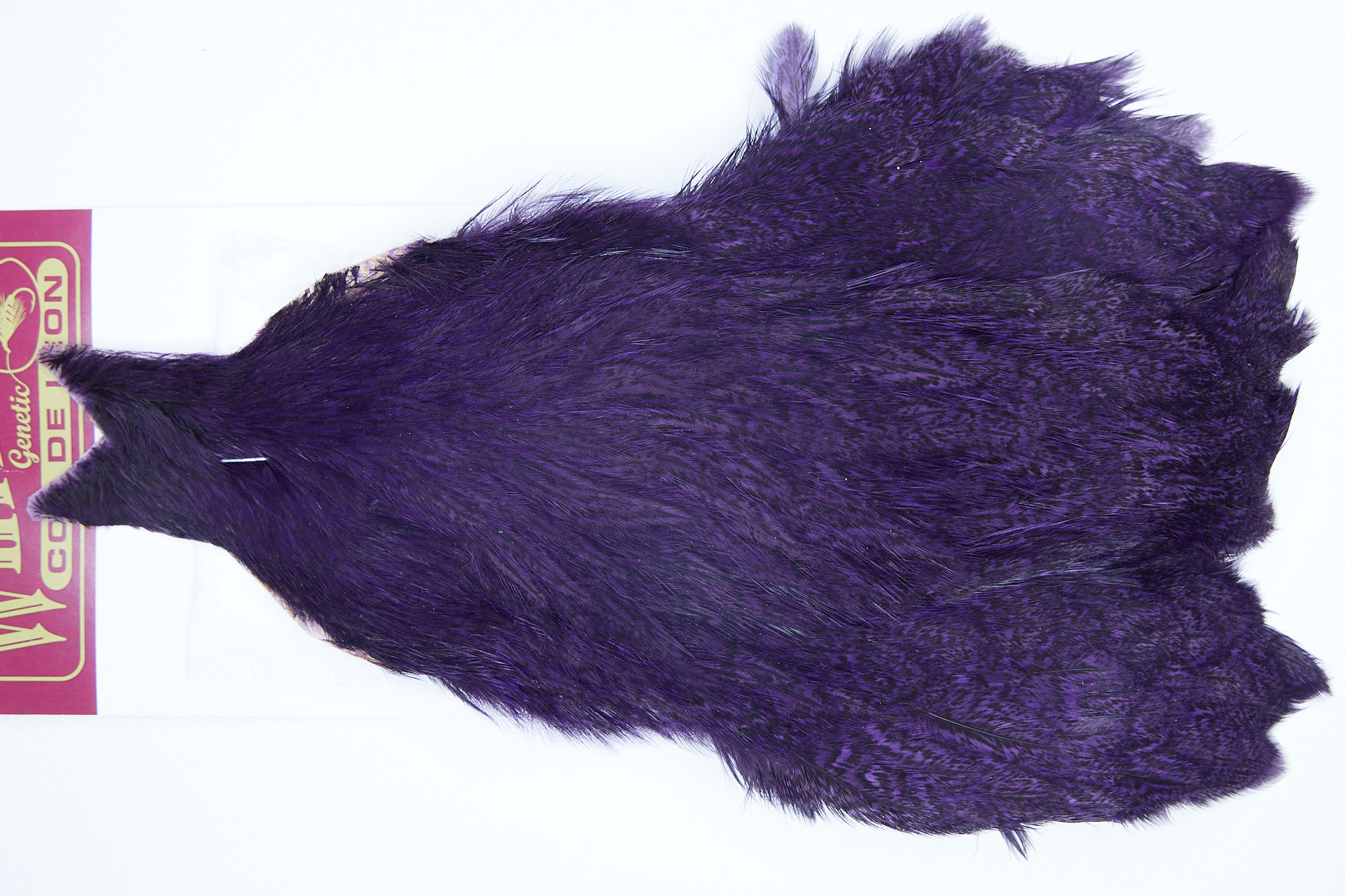 3145 is a Coq De Leon Hen Cape of Speckled Purple color. The image shown is an actual photo of this cape. This is NEW UNUSED HACKLE.